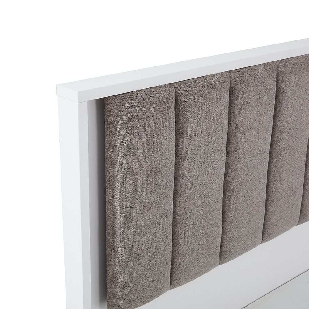 Sparkle 160X200 Bed With Upholstered Headboard & LED-HG White & Beige