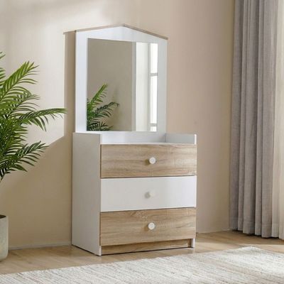 بفضل لونها الدافئ من خشب البلوط سونوما ولمسة بيضاء أنيقة، تُضفي الطاولة توهجًا طبيعيًا ناعمًا وتناغمًا عصريًا على أي غرفة نوم.