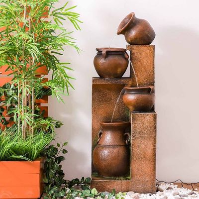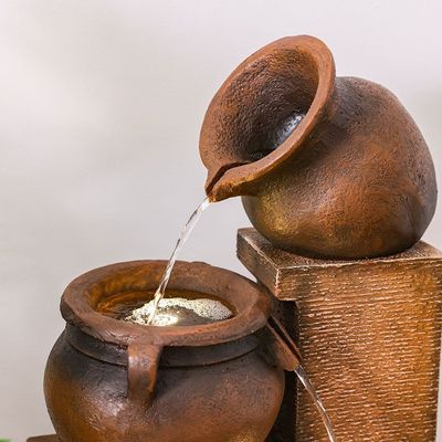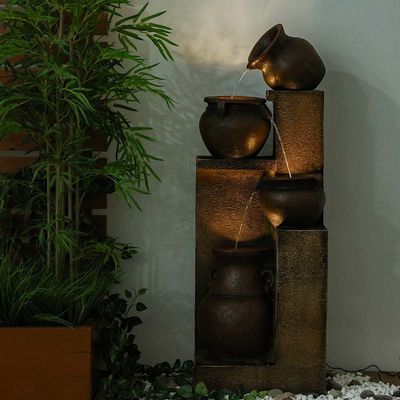 أضف سحرًا ريفيًا إلى مساحتك مع نافورة فالنسيا. مصنوعة من البولي راتنج عالي الجودة، النافورة متينة. تعمل مصابيح LED في طبقات النافورة على إبراز حركة المياه المتساقطة للحصول على انعكاس مضاء خفي. تأتي مع ضمان لمدة عام واحد. دع الأصوات اللطيفة للمياه المتدفقة والتوهج الناعم للأضواء تجلب الهدوء والاسترخاء مباشرة إلى مساحتك.