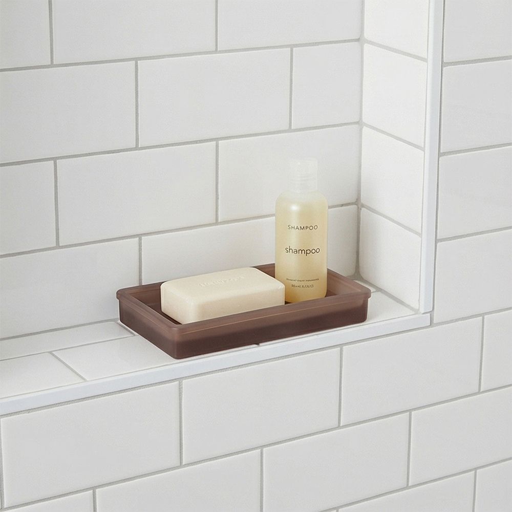Complements the matching dispenser, tumbler, cotton jar, and toilet brush for a coordinated look.