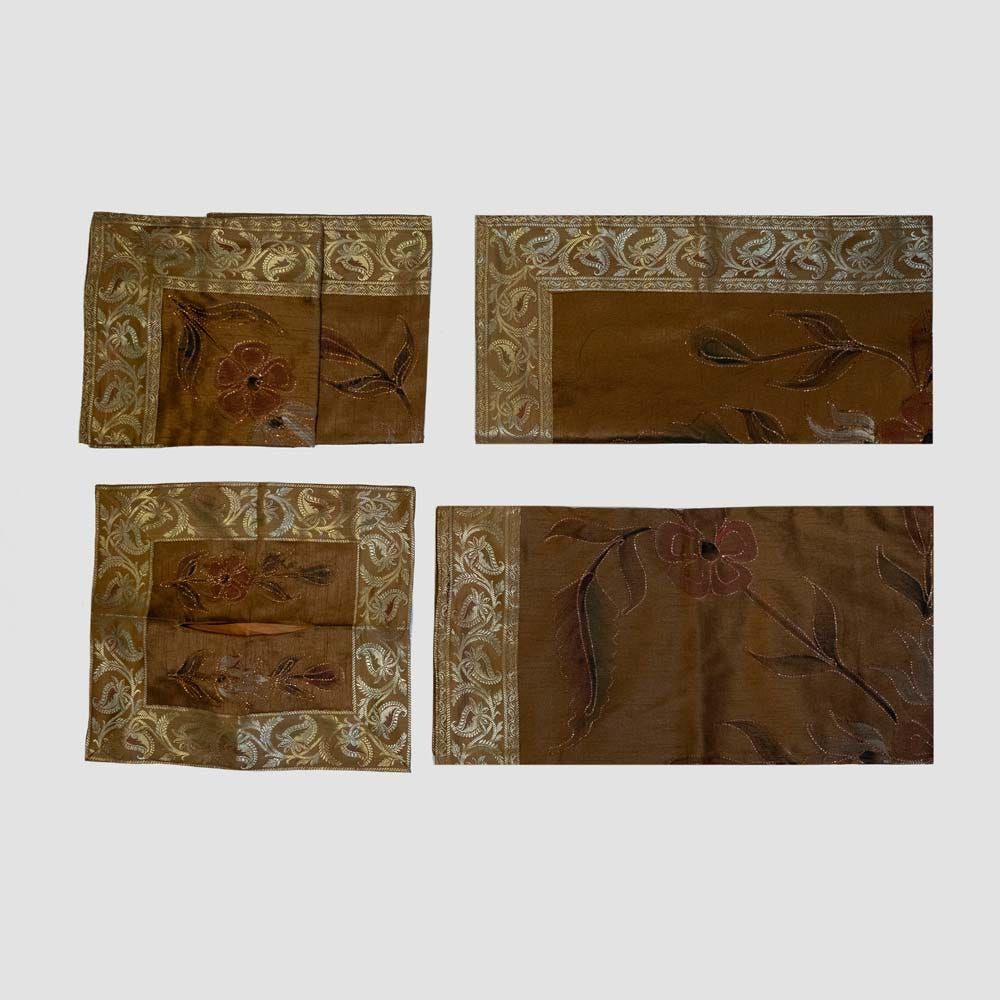 Aasia 5-Piece Table Cloth Set Mustured1XTable Cloth 110X110cm, 2X Placemat 50X50cm,1X Runner 50X100cm, 1X Tissue Box Cover