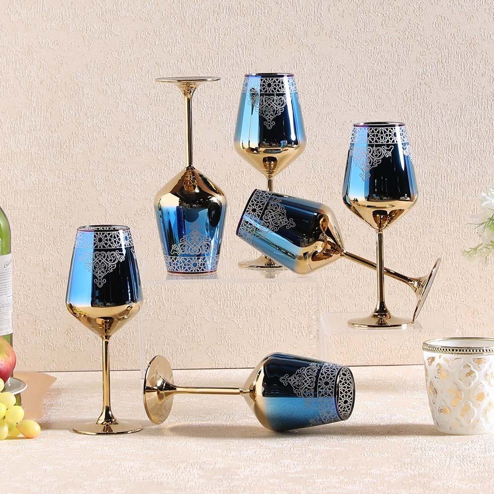 Allegra 6-Piece Premium Wine Glass Set Blue + Gold 350 ml