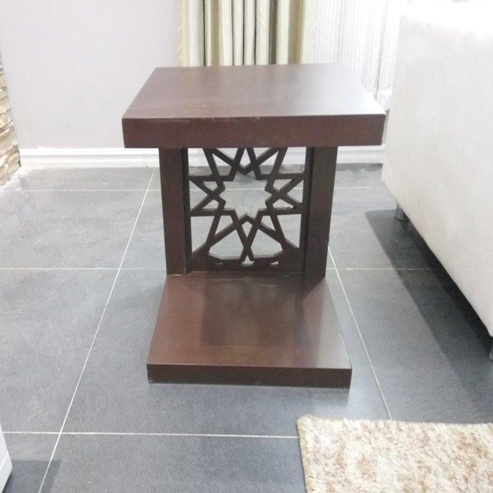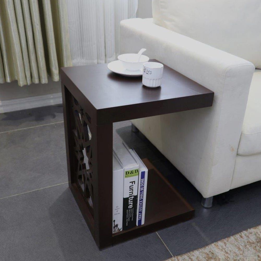 The series has available side table in brown color. This is a one side open type of table and the open space can be use for displaying items or keeping books or used as laptop desk.