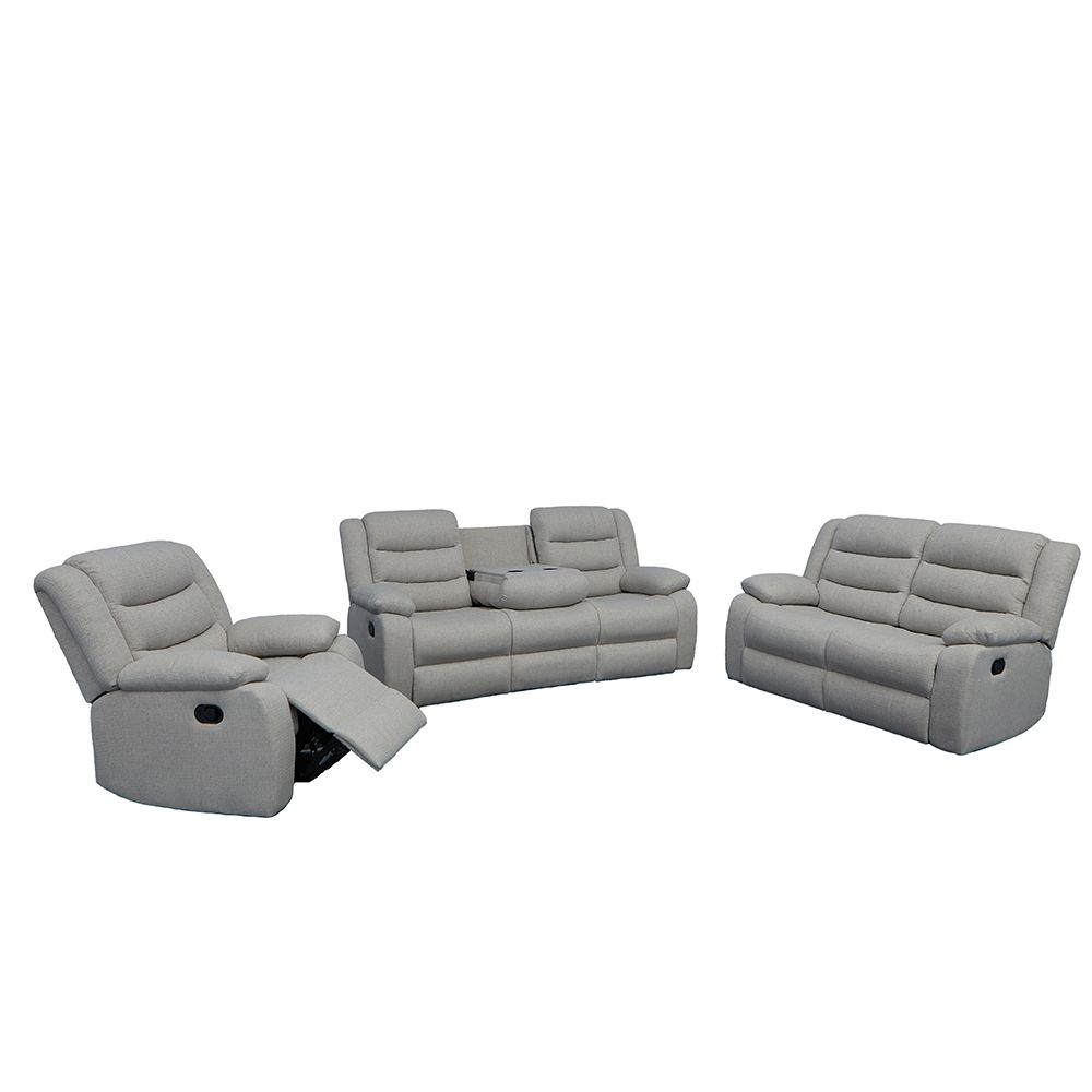 Archer 3 Seater Fabric Recliner With Drop Down Table -Light Brown