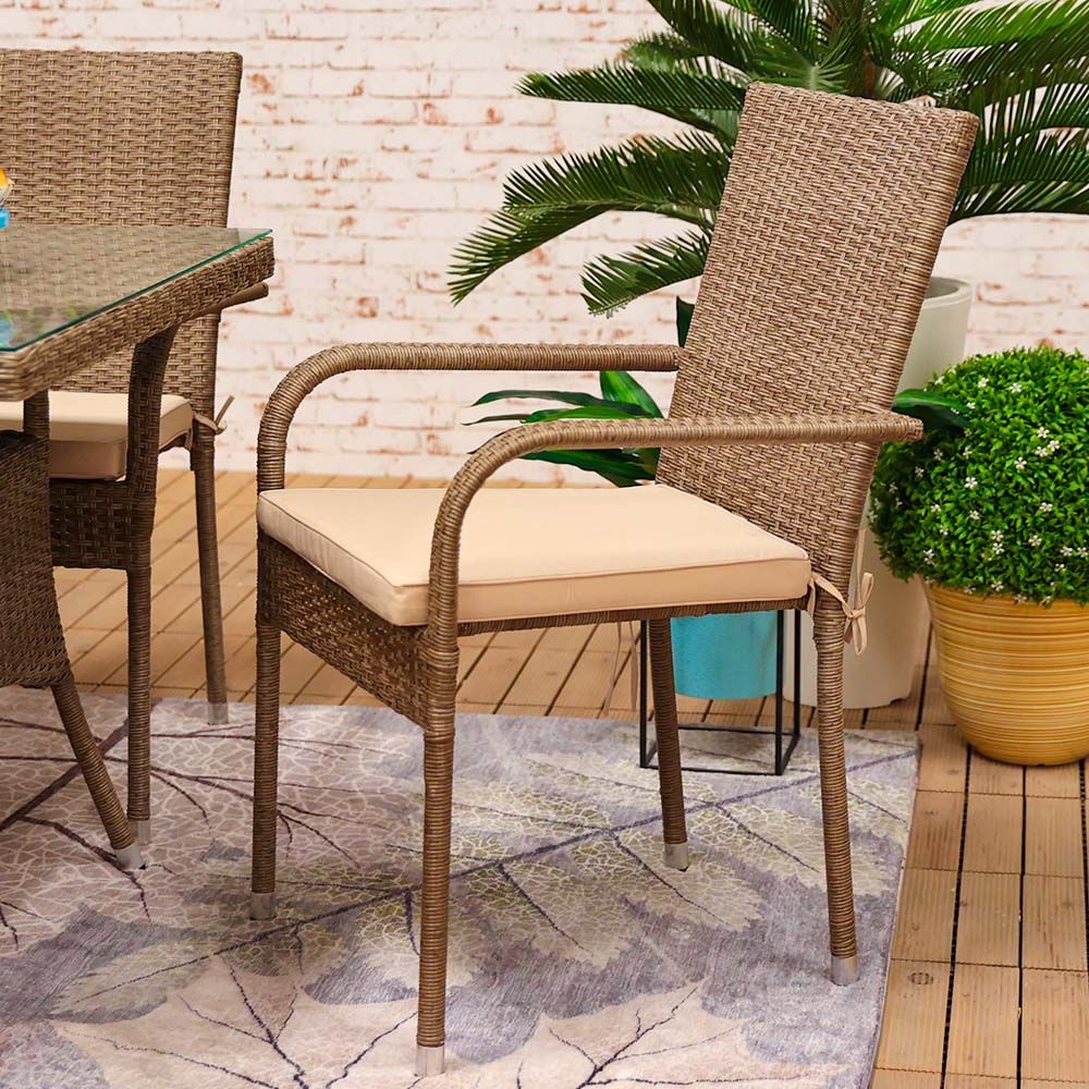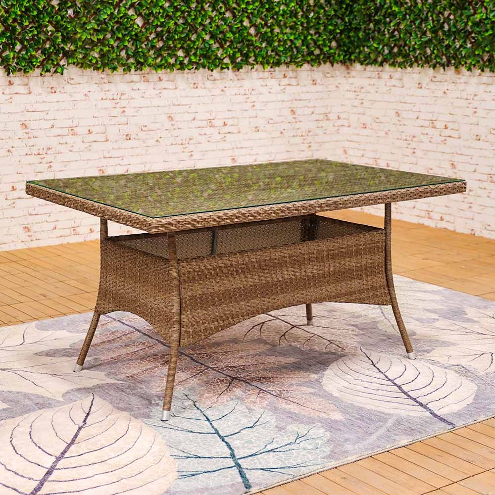 Modern Design dining with Steel frame & Rattan along with Tempered Glass on top