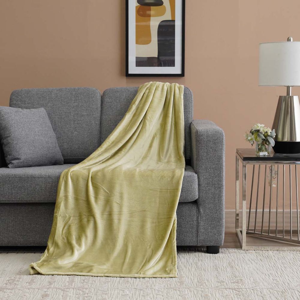 AW23 Solid Flannel Double Blanket 200x200 Cm Light Green