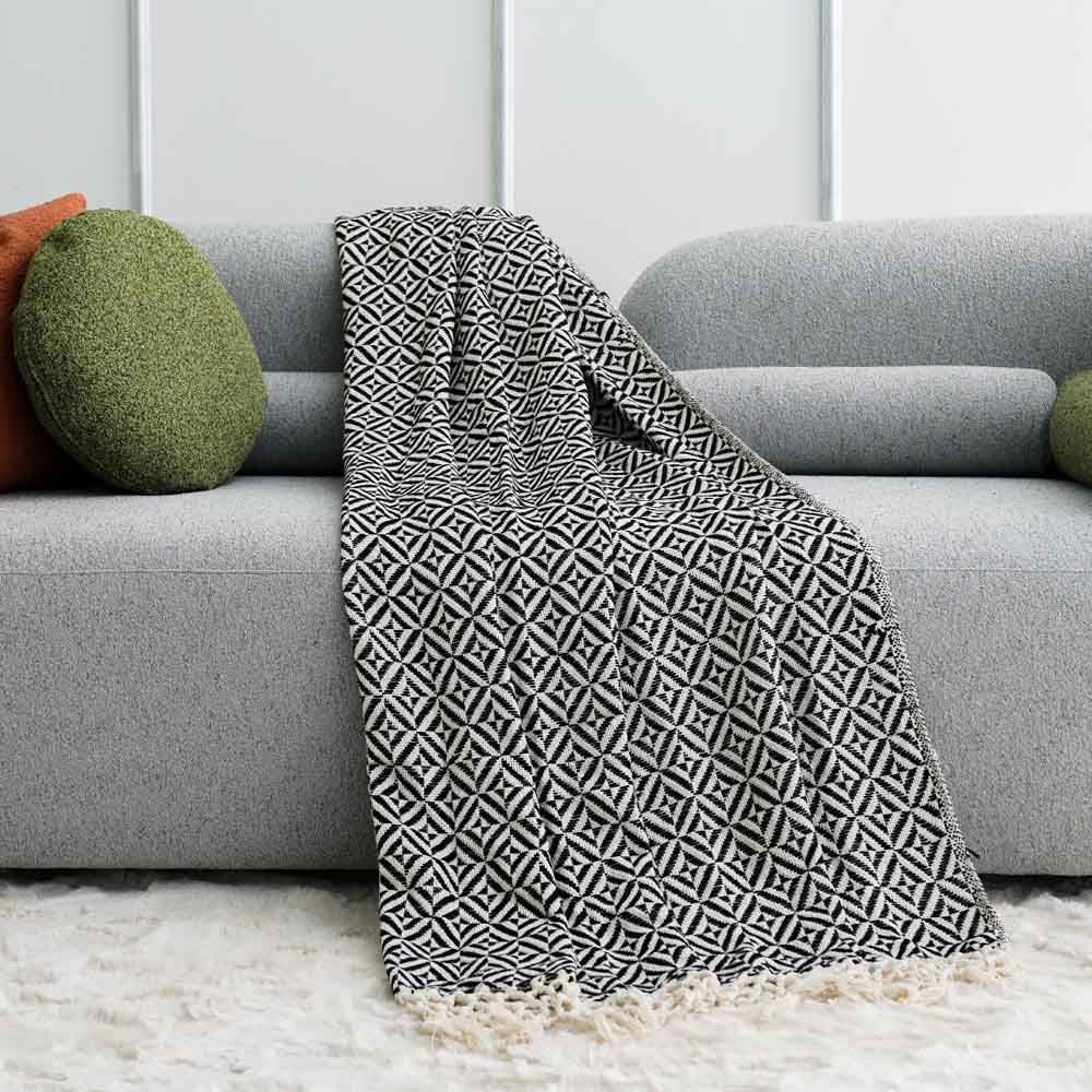 AW23 Takisha Woven Decorative Cotton Throw 127x154 Cm Black