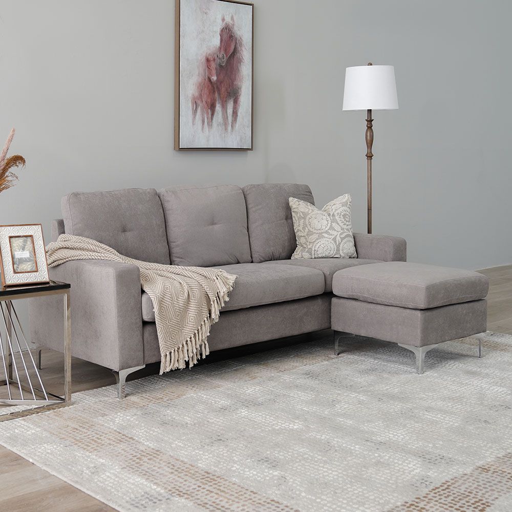 Basma Fabric Sectional Sofa + Ottoman - Light Gey