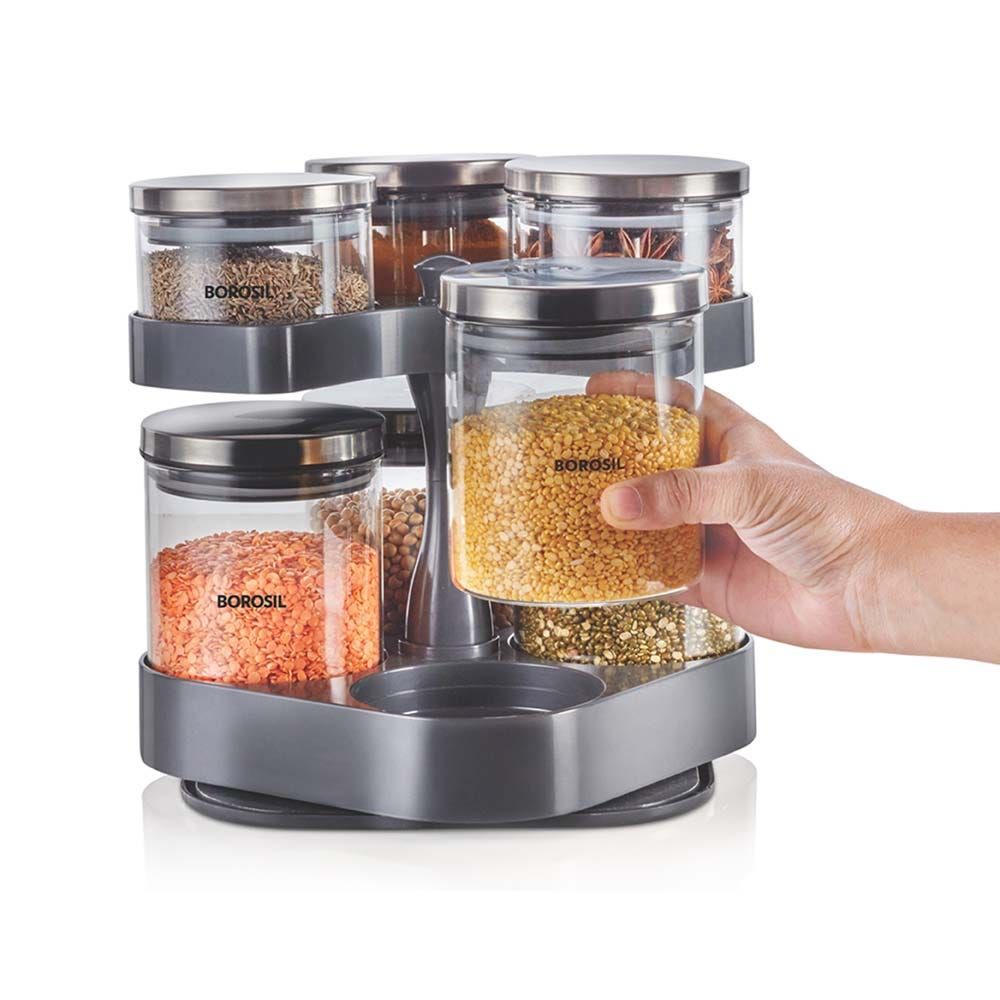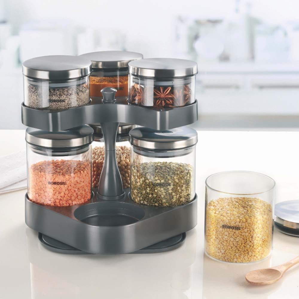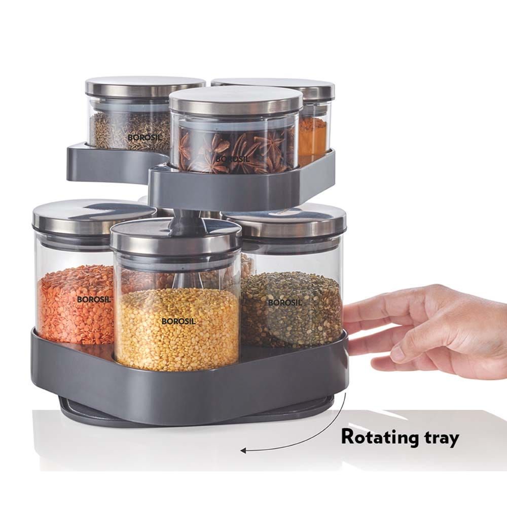 The product Borosil Spin N Store Set Of 7 - Bvspst06037 images have props used for illustrative purposes. Product Color may vary slightly due to photographic lighting or your screen settings.