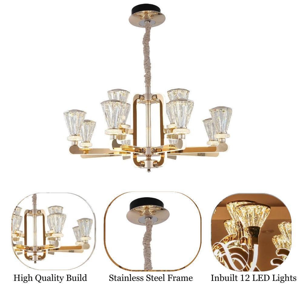 Crafted from high-quality stainless steel and acrylic, the chandelier is sleek, and durable, displaying a sturdy build.