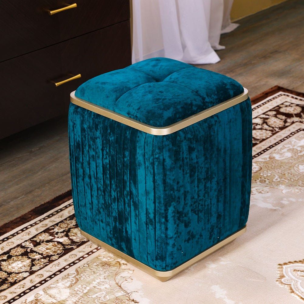 Charlotte Dresser with Mirror and Stool-Walnut / Teal Green / Golden