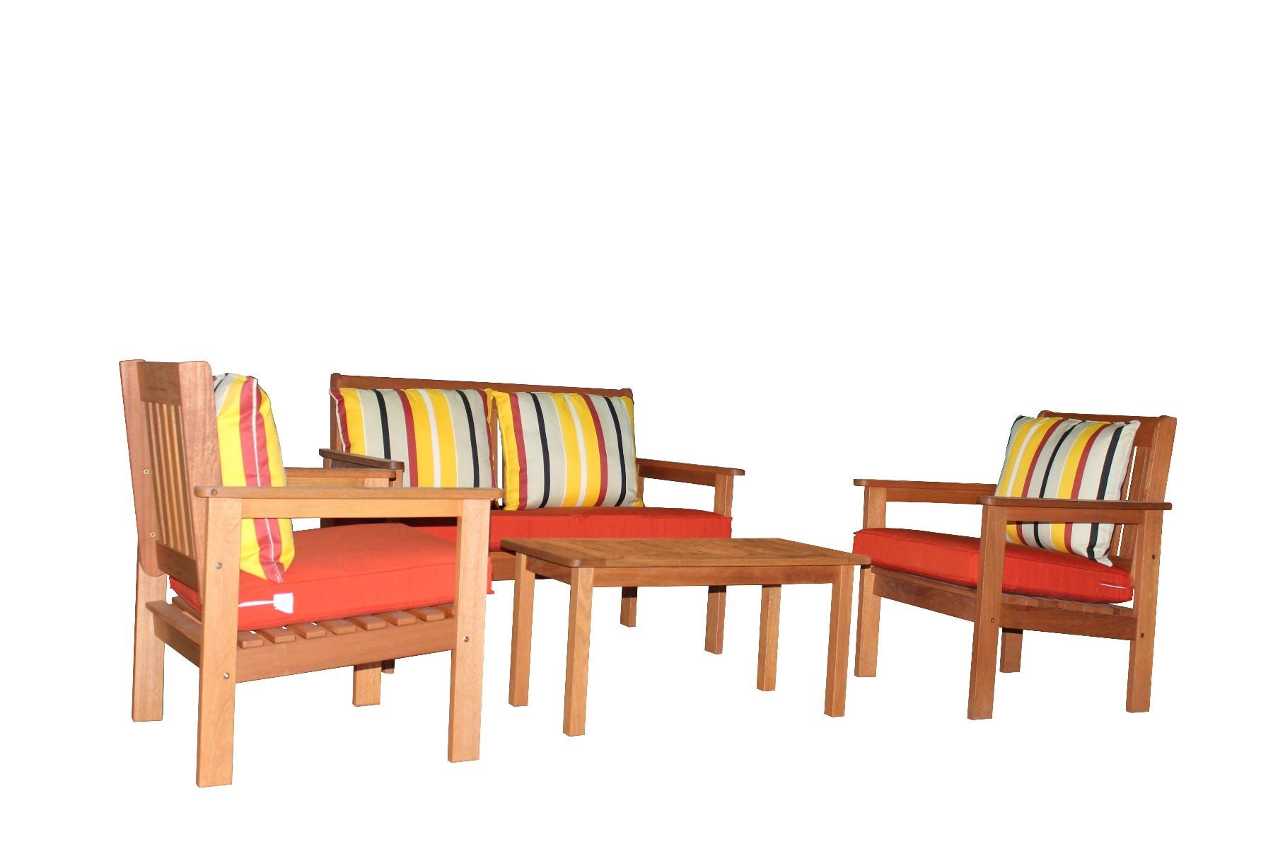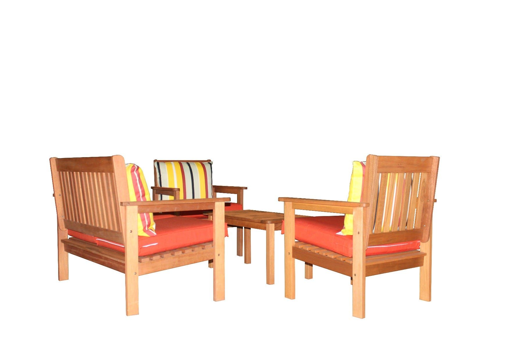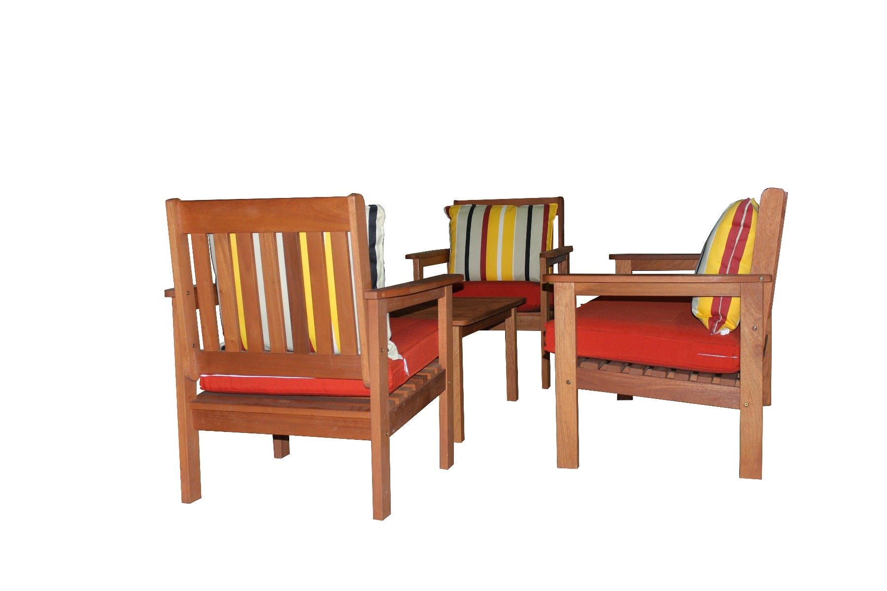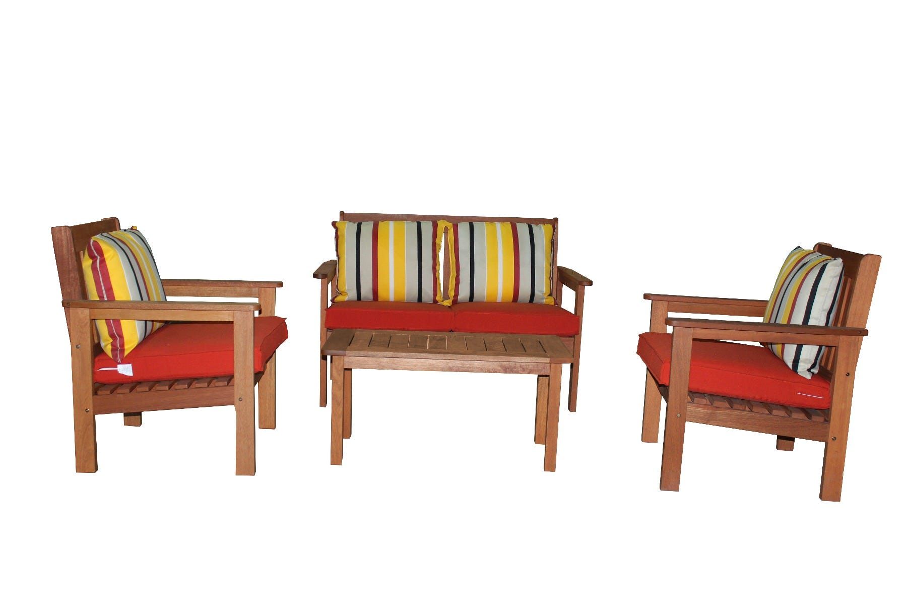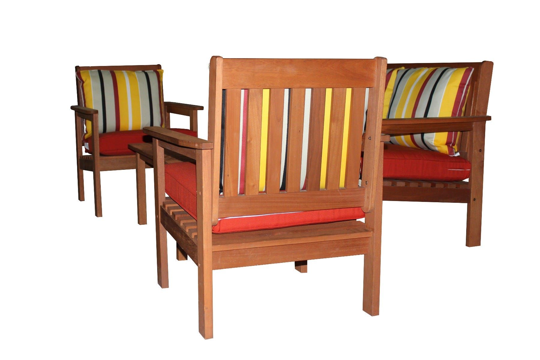 4 Seaters Wooden Sofa Set with Wooden Table and Seat Cushions