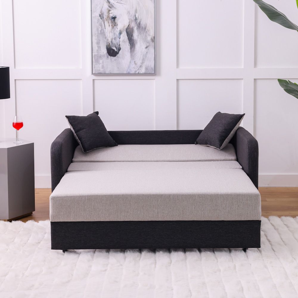 Desmond 2-Seater Fabric Sofa Bed - Light Brown/Charcoal - With 2-Year Warranty