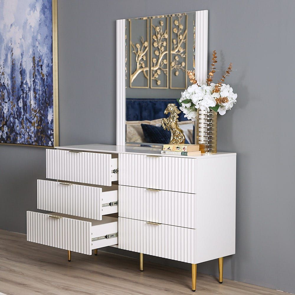 Always clean the dresser mirror in the wardrobe and dressers by spraying water or recommended glass cleaning solutions. Ensure all watermarks are wiped clean with a soft dry cloth immediately after wet cleaning the mirror surface.