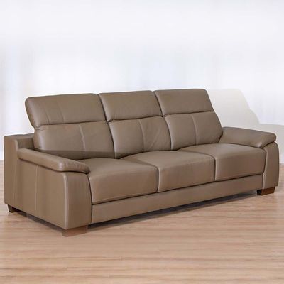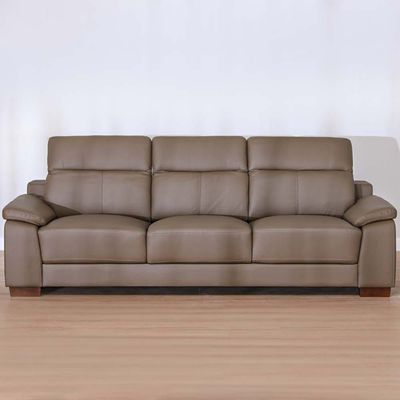 The sofa is upholstered with a half-leather fabric, providing a comfortable and posh feel while retaining a classic look.