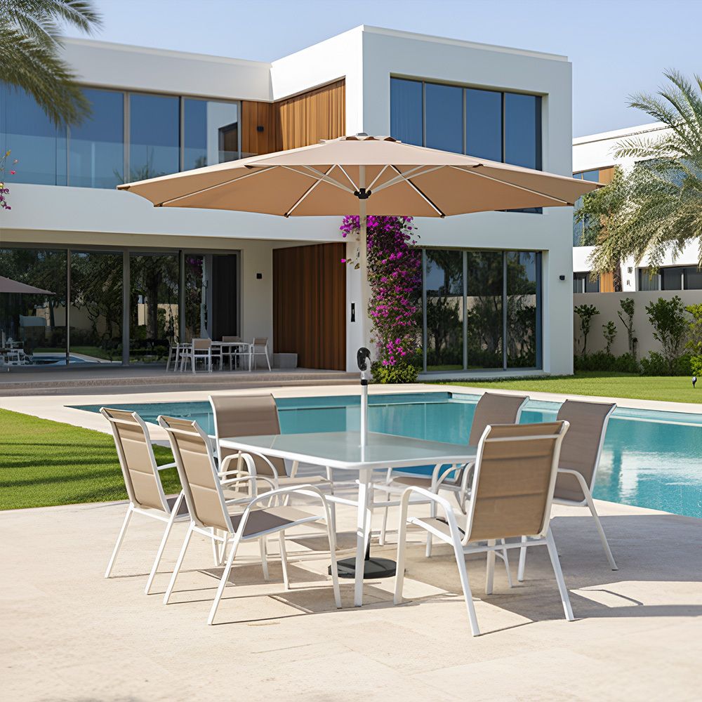 Eve 1 + 4-Seater Textilene Dining Set with Umbrella - White/Khaki