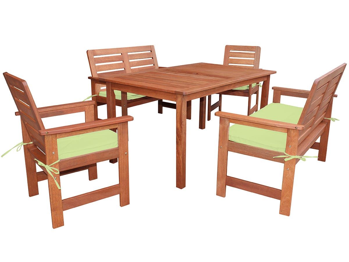 Fedra Wooden 1 + 6-Seater Dining Set With Cushion - Brown/Green