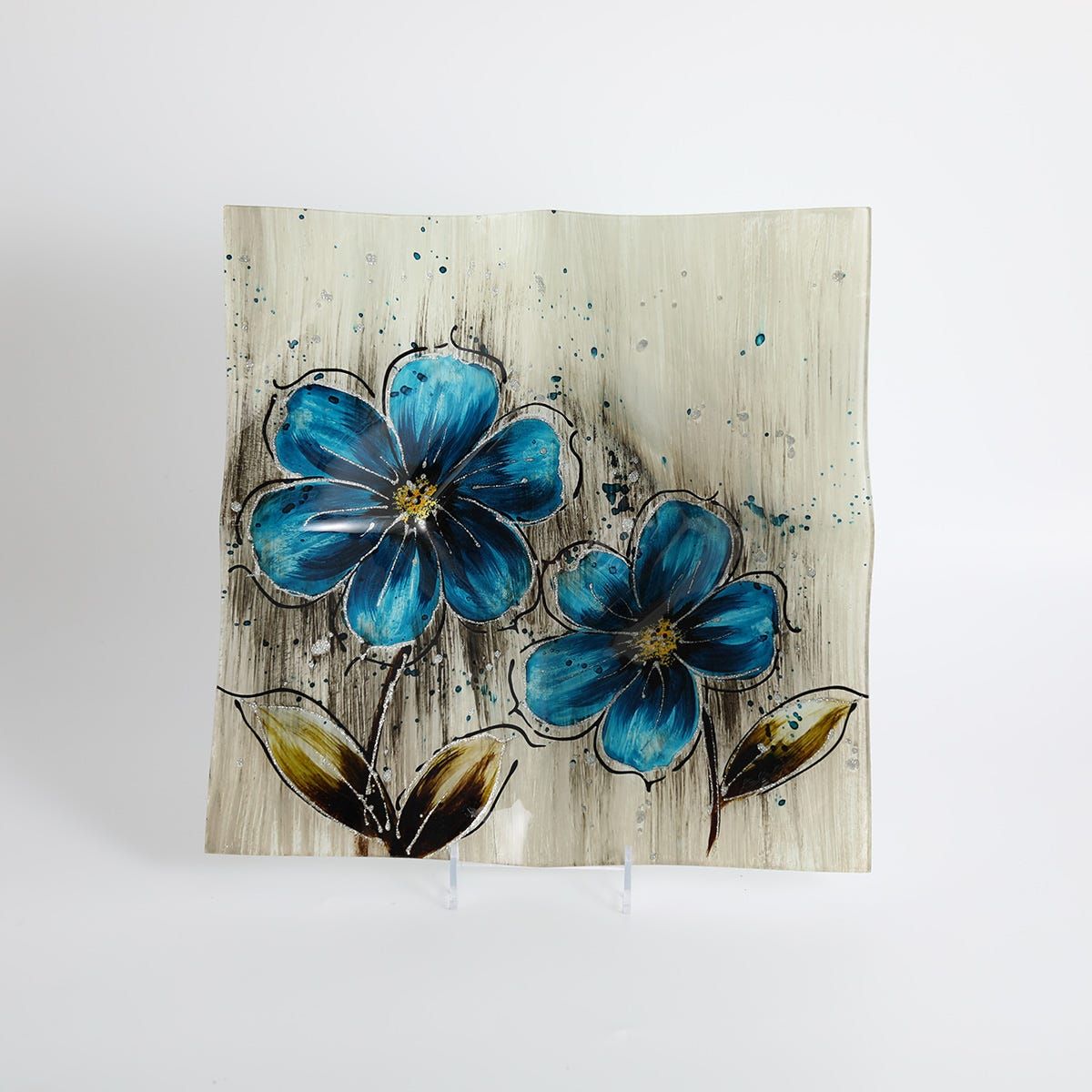 Flowery Decorative Square Platter Blue 35.56 Cm WT6897-14 Inches