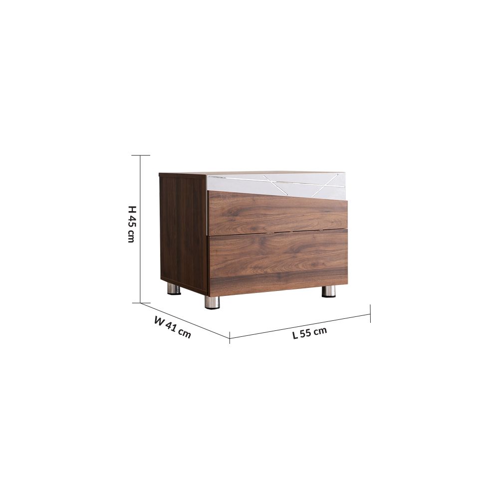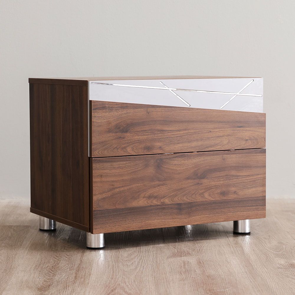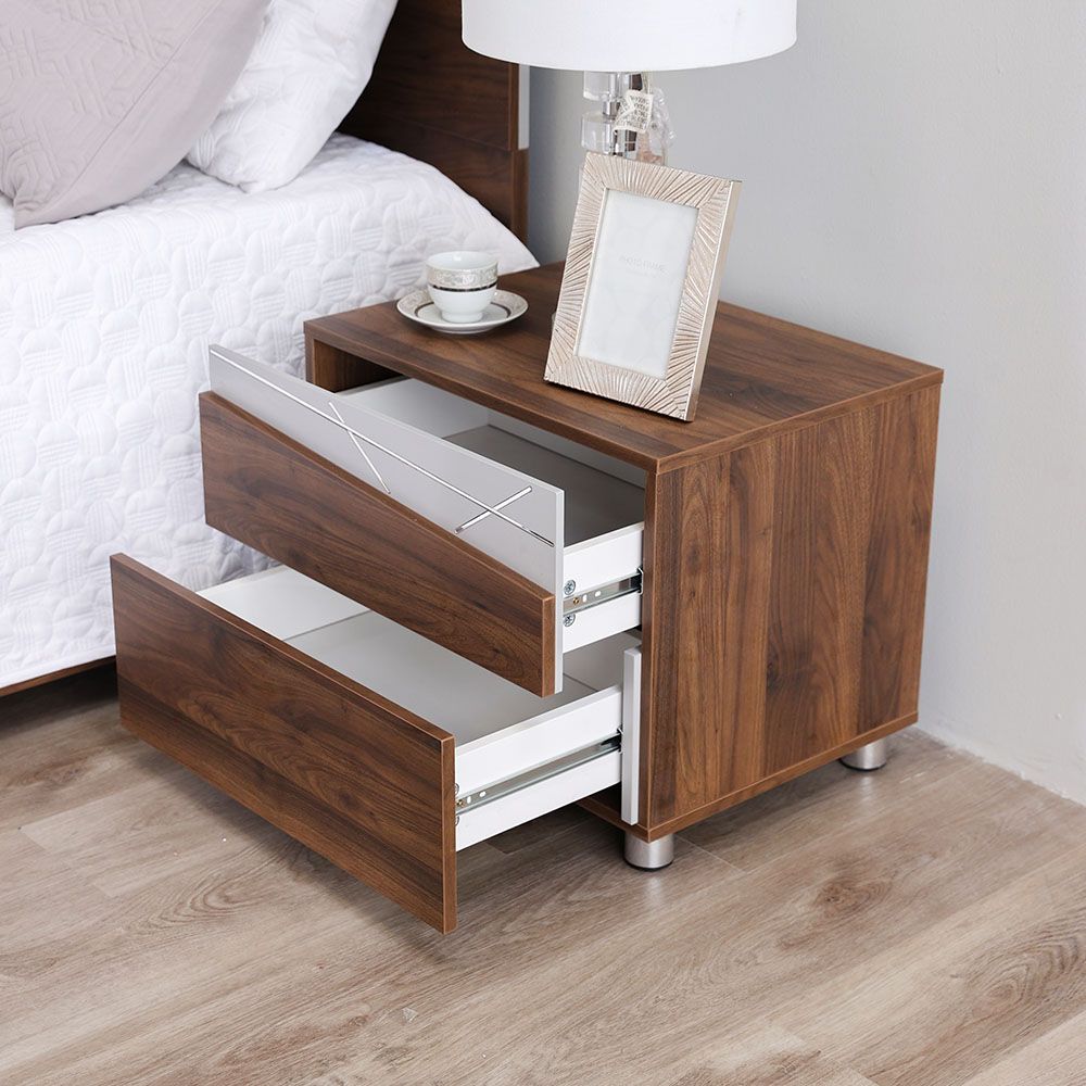 Made of high-quality wood with a metal base, the night stand is sturdy and highly durable. It has a melamine coating for a fine finish.