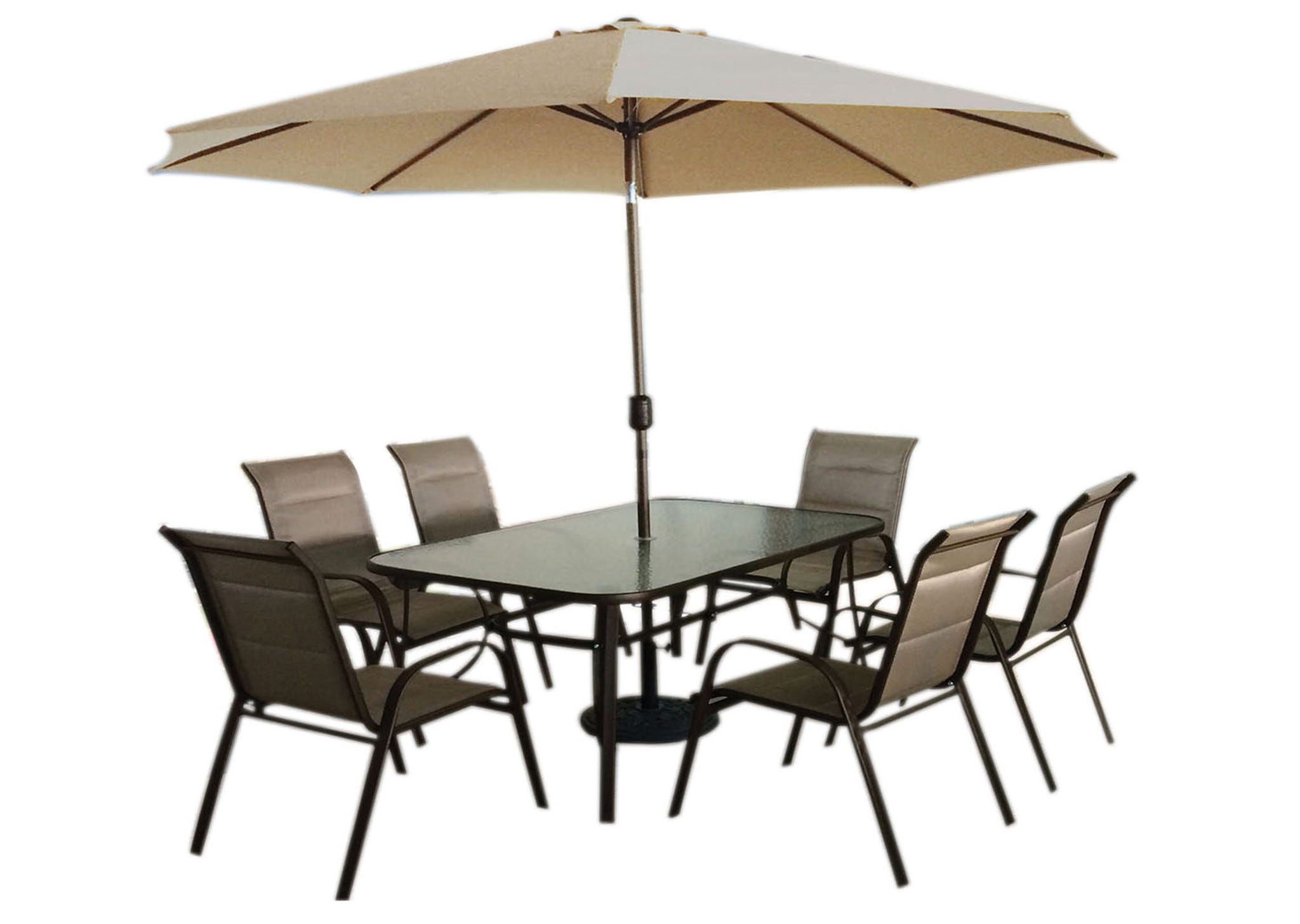 Furn Im JHF 1 + 6-Seater Padded Dining Set with Umbrella and Base - Beige