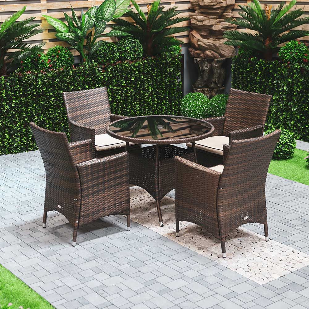 Luxury 1 + 4-Seater Outdoor Dining Set - Brown