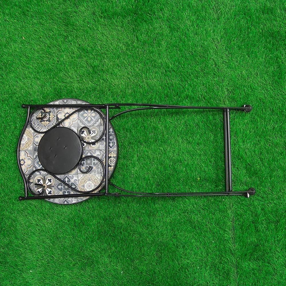 It includes 1 Dining and 4 chair and its outer frame is metal, Table top is made of Stone/ Concrete.