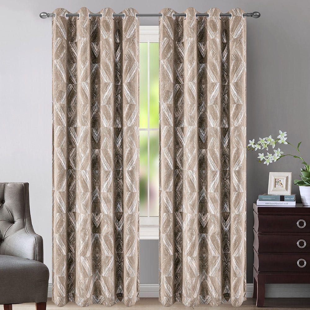 Jade Diamond Set of 2 Printed Anti- Bacterial Curtains 1-Beige 135x240 cm