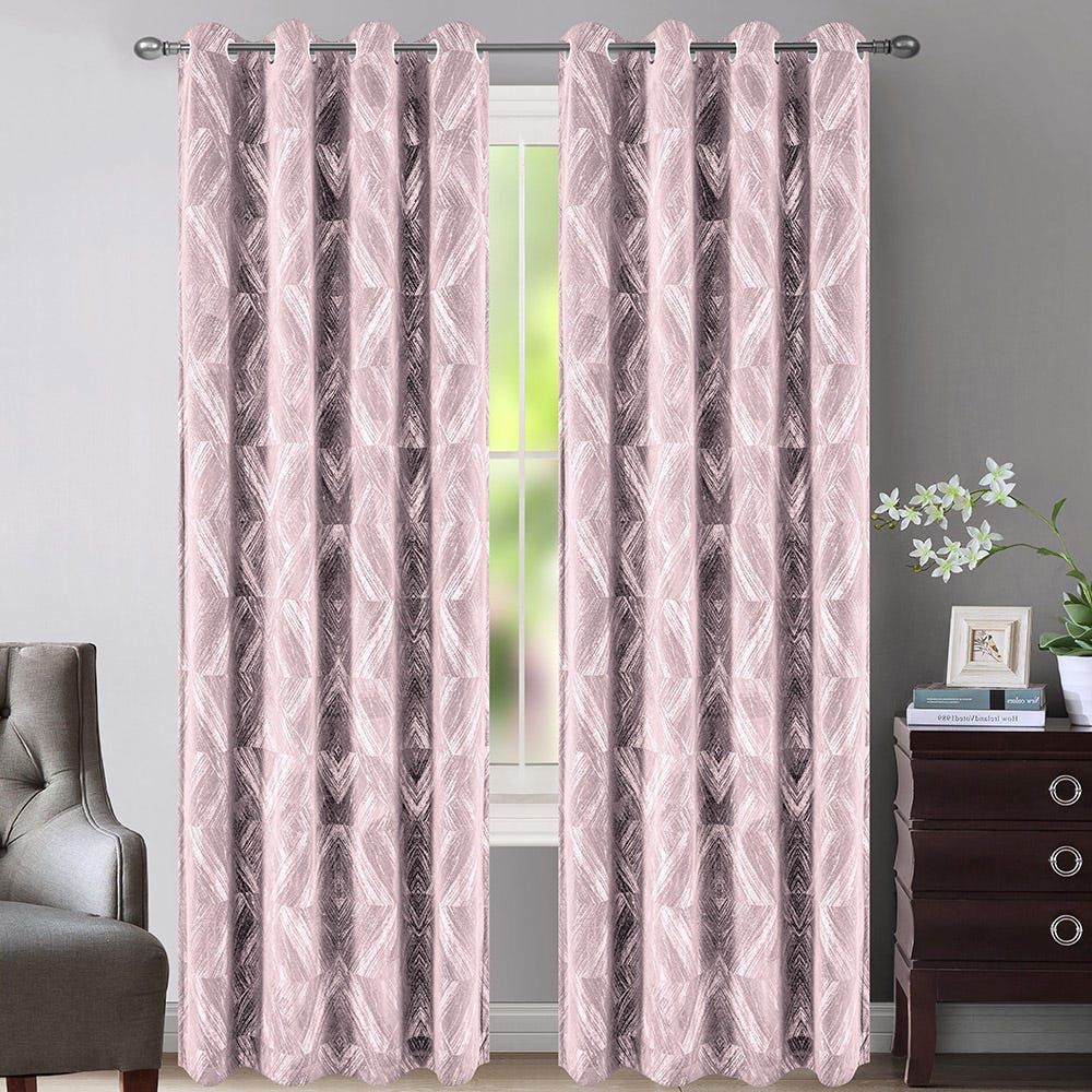 Jade Diamond Set of 2 Printed Anti- Bacterial Curtains 13-Peach 135x240 cm