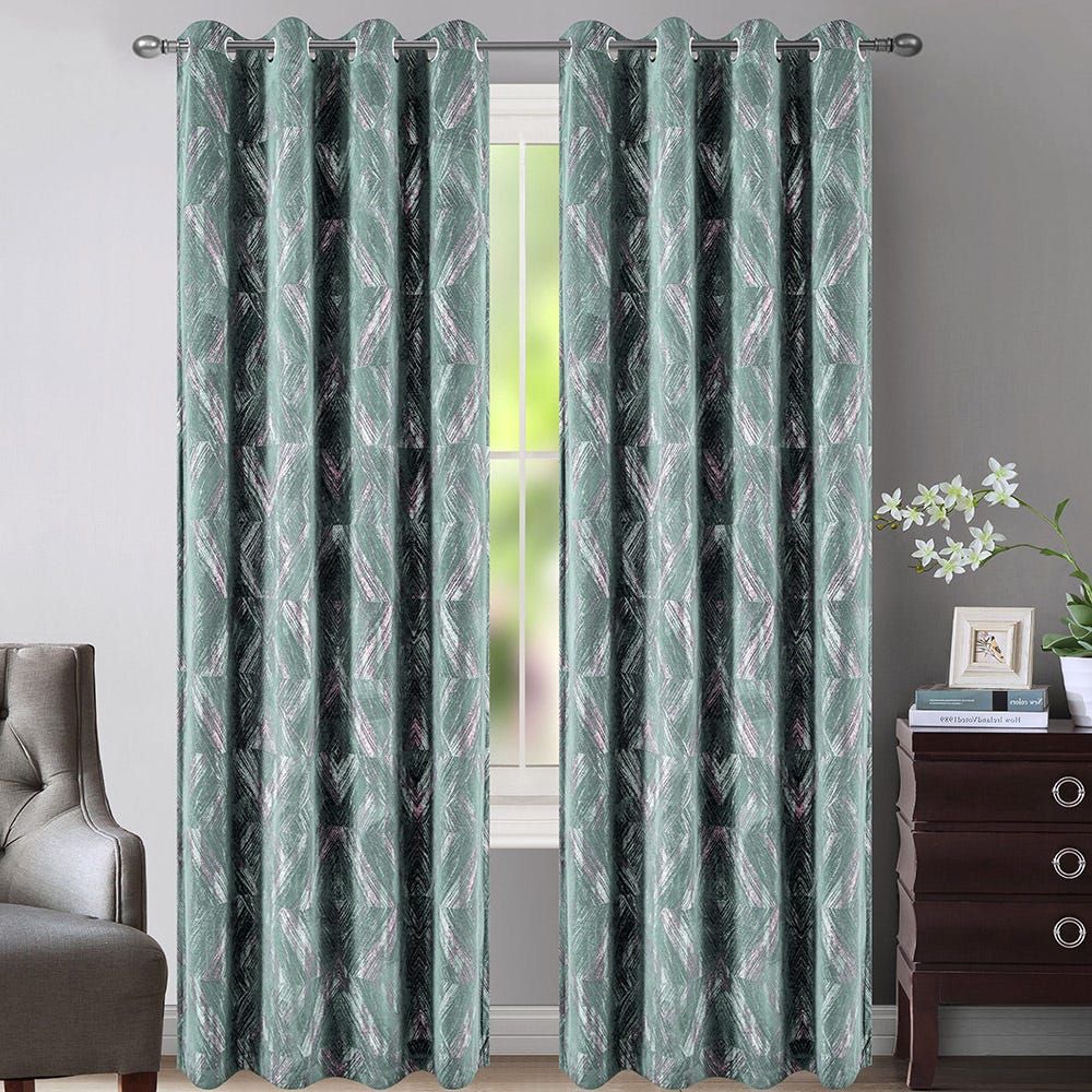 Jade Diamond Set of 2 Printed Anti- Bacterial Curtains 33-Sea Green 135x240 cm