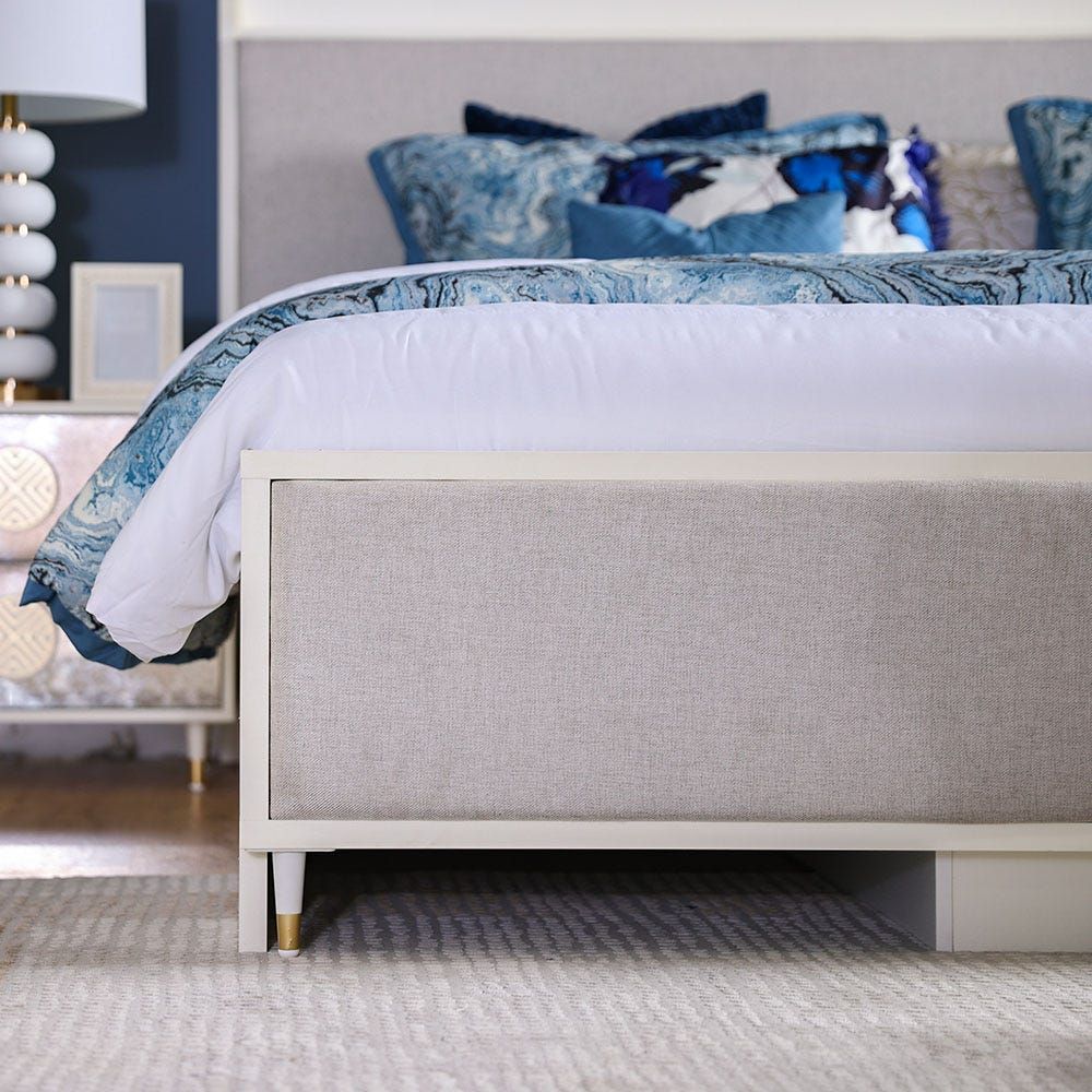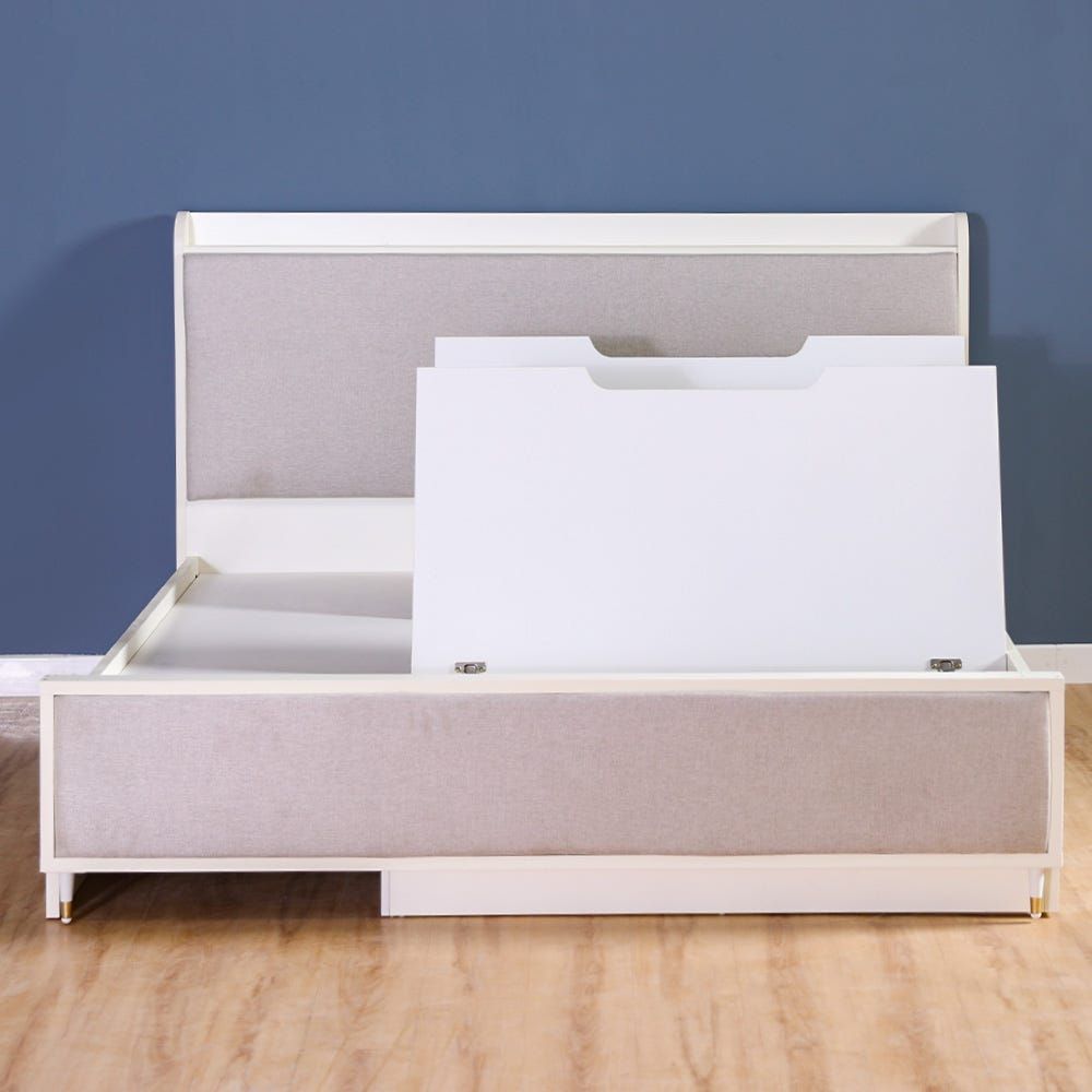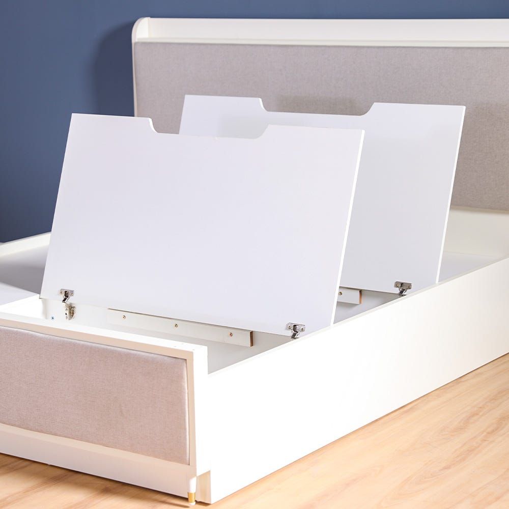 Katrina 180X200 King Bed with box storage - White / Beige / Golden