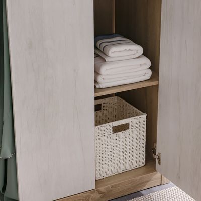The elegant dual tone finishes with Ash white and Sonoma Oak display a modern combination that brightens your space while offering natural wood warmth.