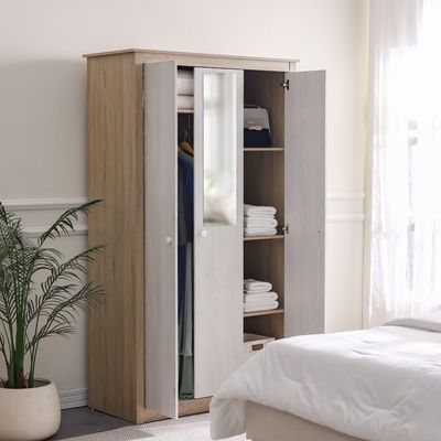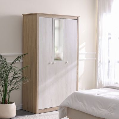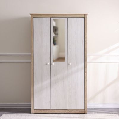 Kelly 3-Door Wardrobe with Mirror - Ash White/Sonoma Oak - With 2-Year Warranty