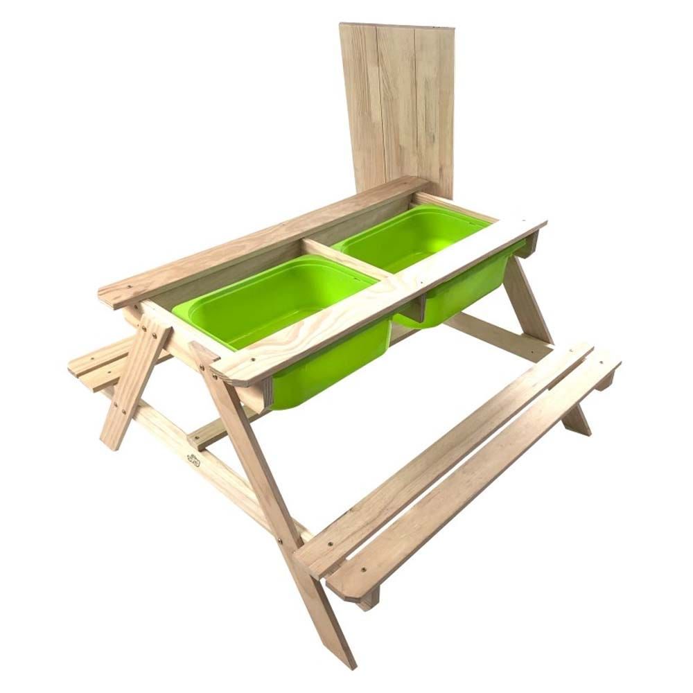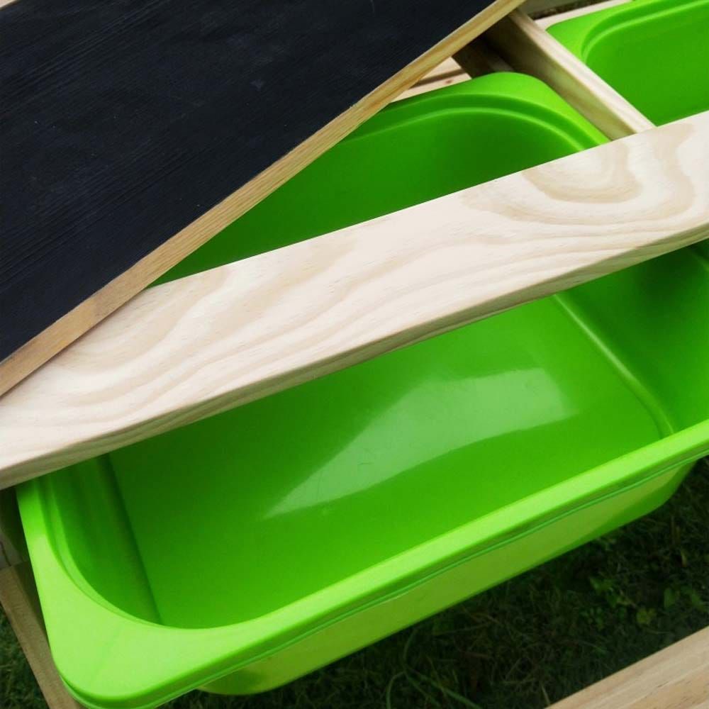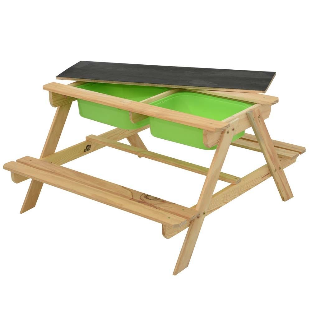 Components: Kids Picnic Table with 2-side bench, plastic water tank, a box of chalk as a gift, manual and screws included.
