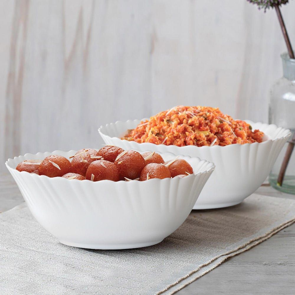 The product LARAH FLUTED WHITE OPAL SERVING BOWL 8" (20 cm) 8SRBFLPW images have props used for illustrative purposes. Product Color may vary slightly due to photographic lighting or your screen settings.
