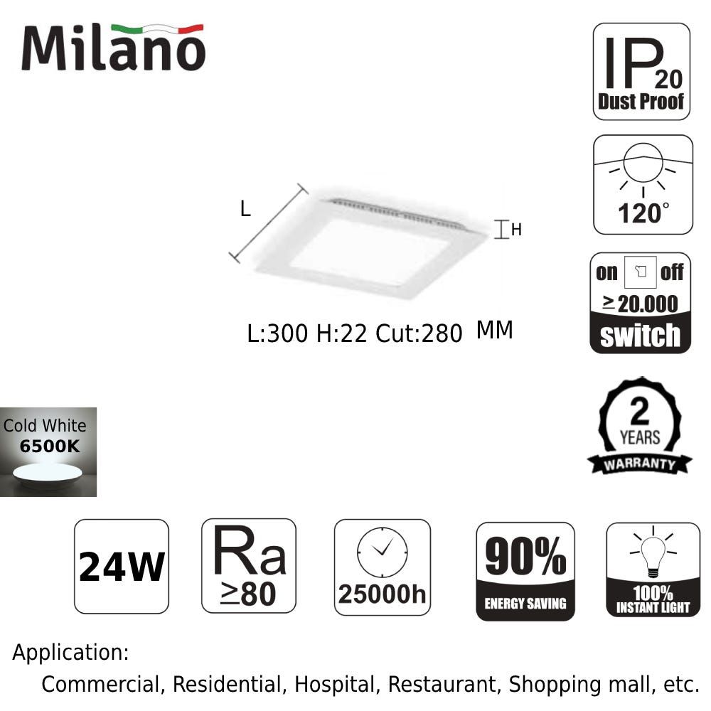The product Milano 24W E-Glow Led Panel Light Sq 6500K images have props used for illustrative purposes. Product Color may vary slightly due to photographic lighting or your screen settings.