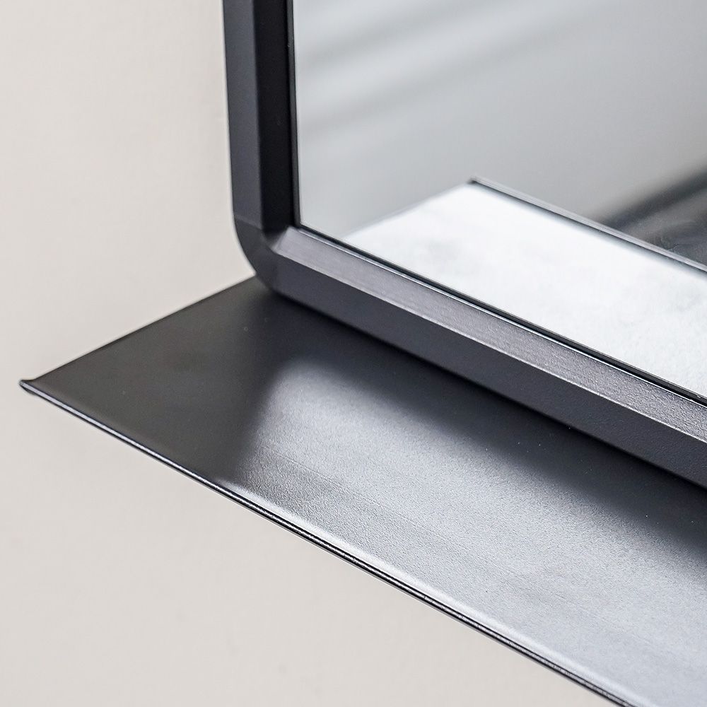 Elegant Mirror: Rectangular mirror with a sleek black frame complements the set.