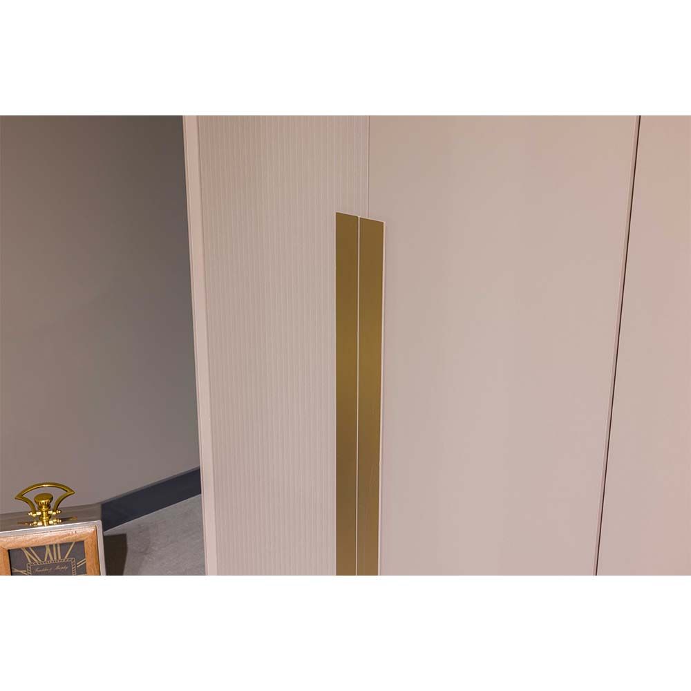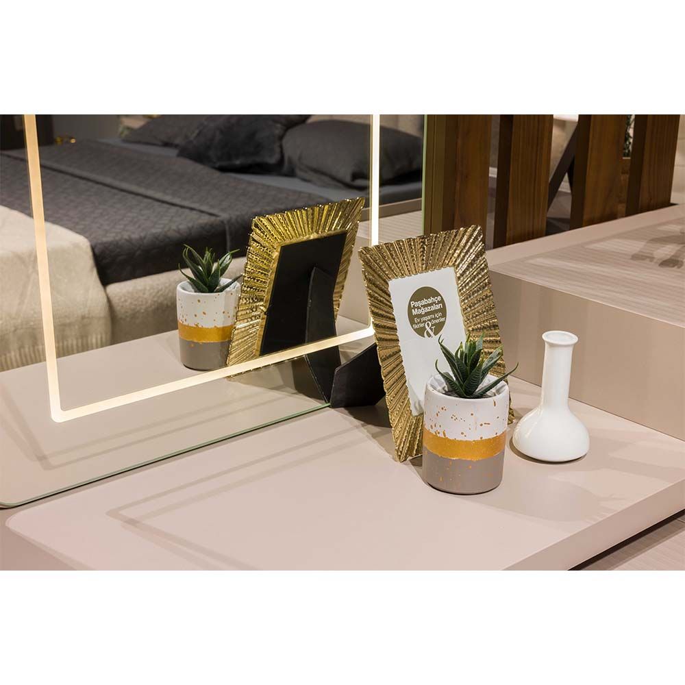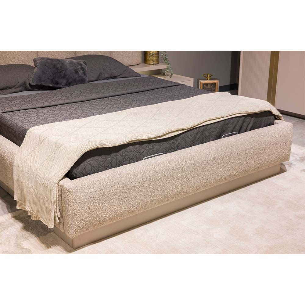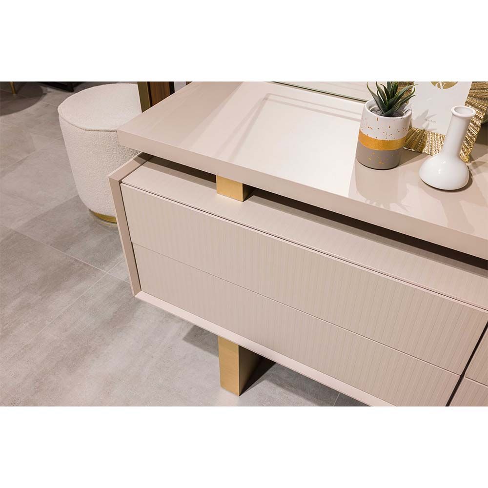 Monza 180x200 King Bed Set with Hydraulic Storage + Dresser with Mirror & LED + Pouf + 2 Nightstands - Cream/Gold - With 2-Year Warranty