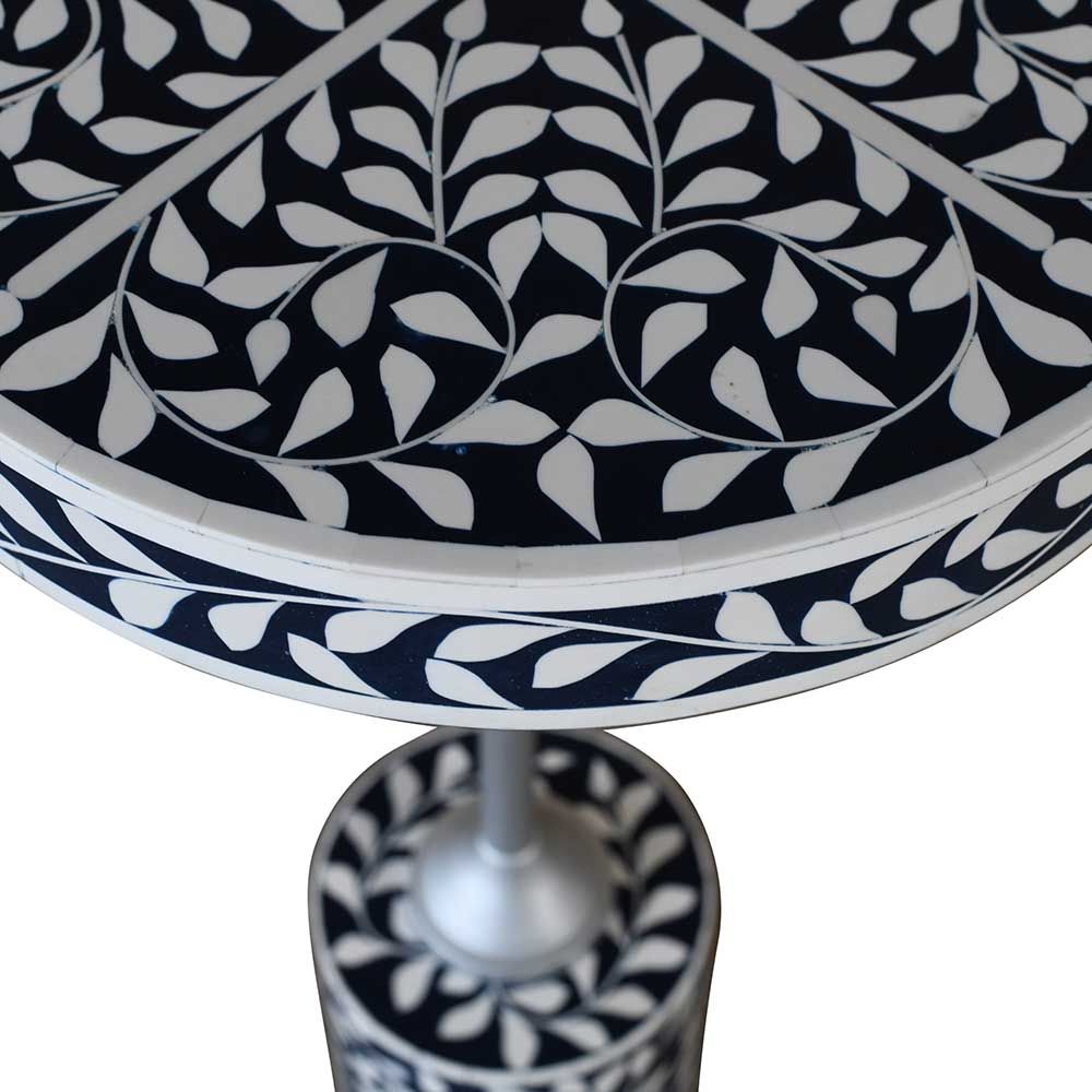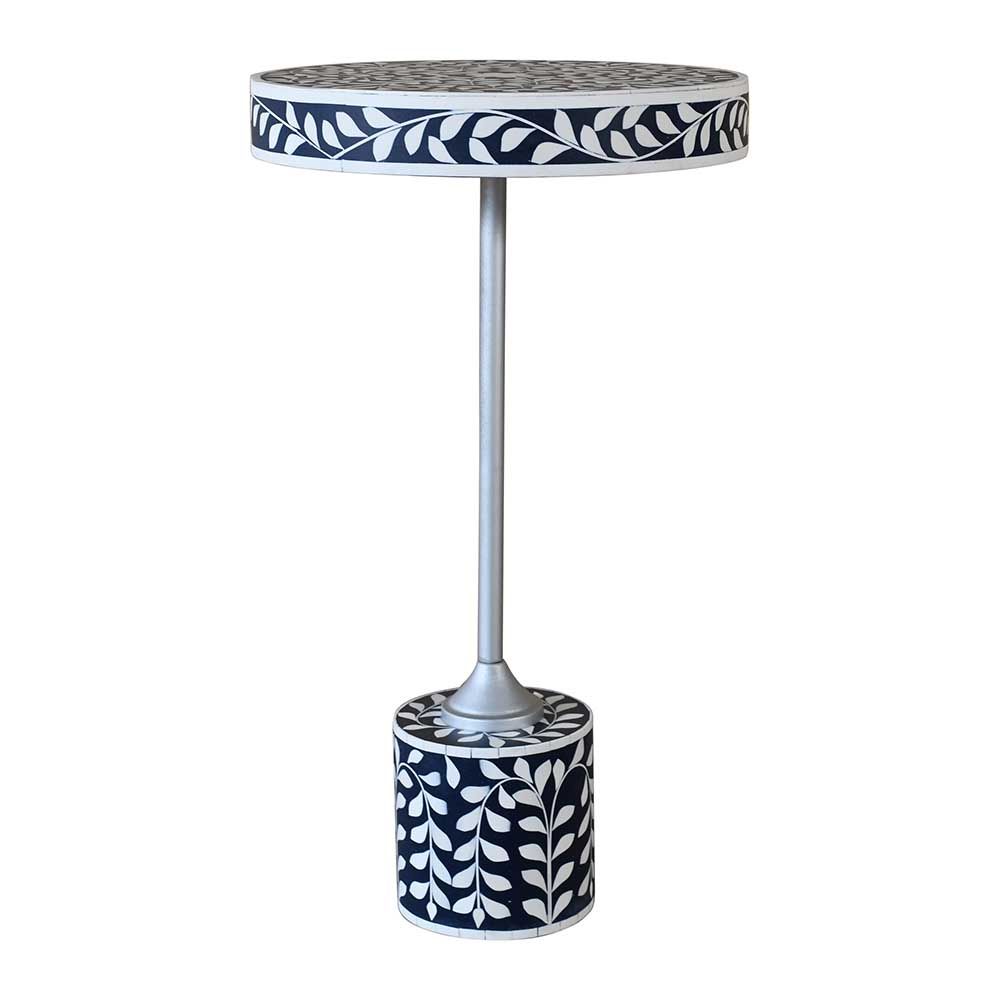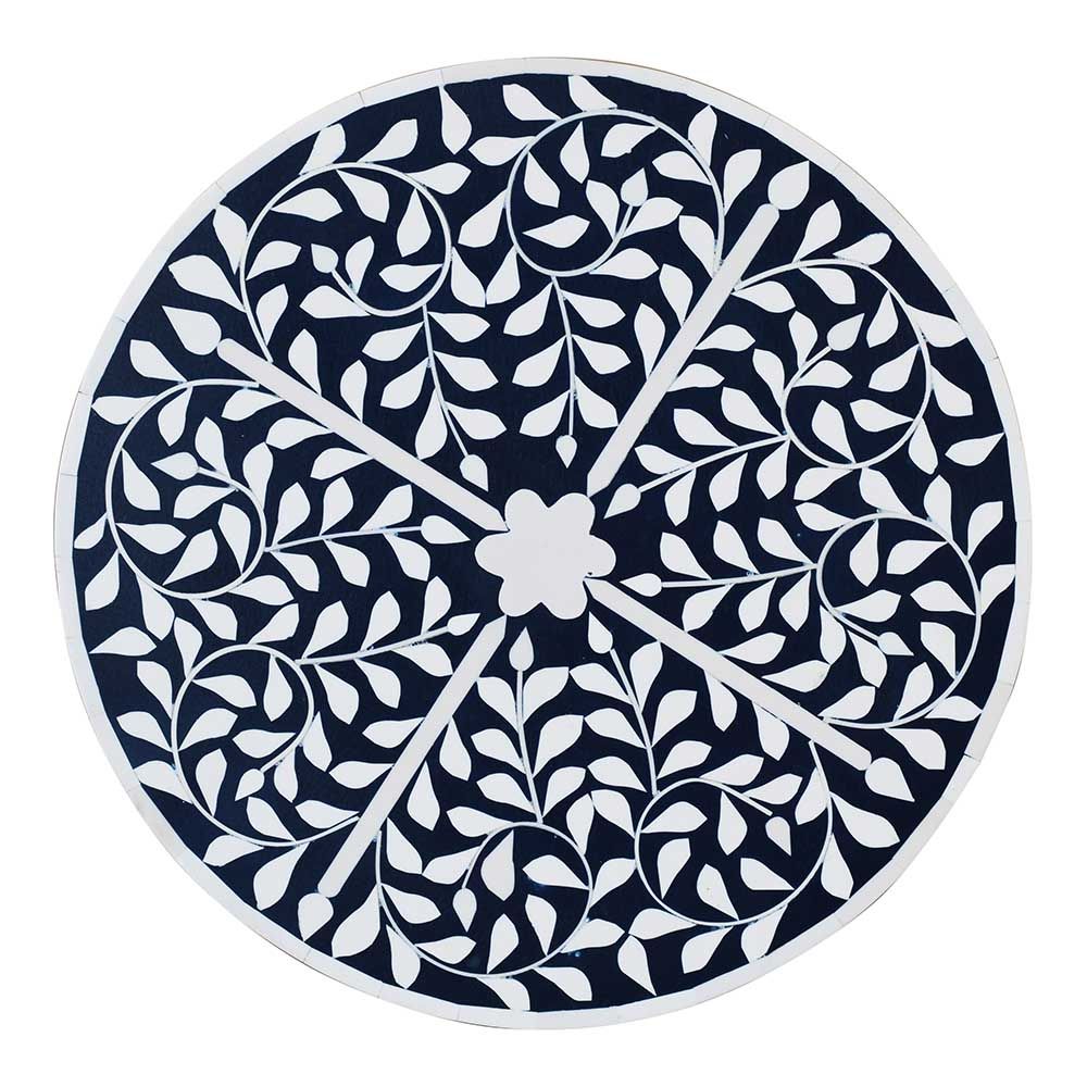 Optical Solid Wood Round Accent Table - Blue/Silver - With 2-Year Warranty