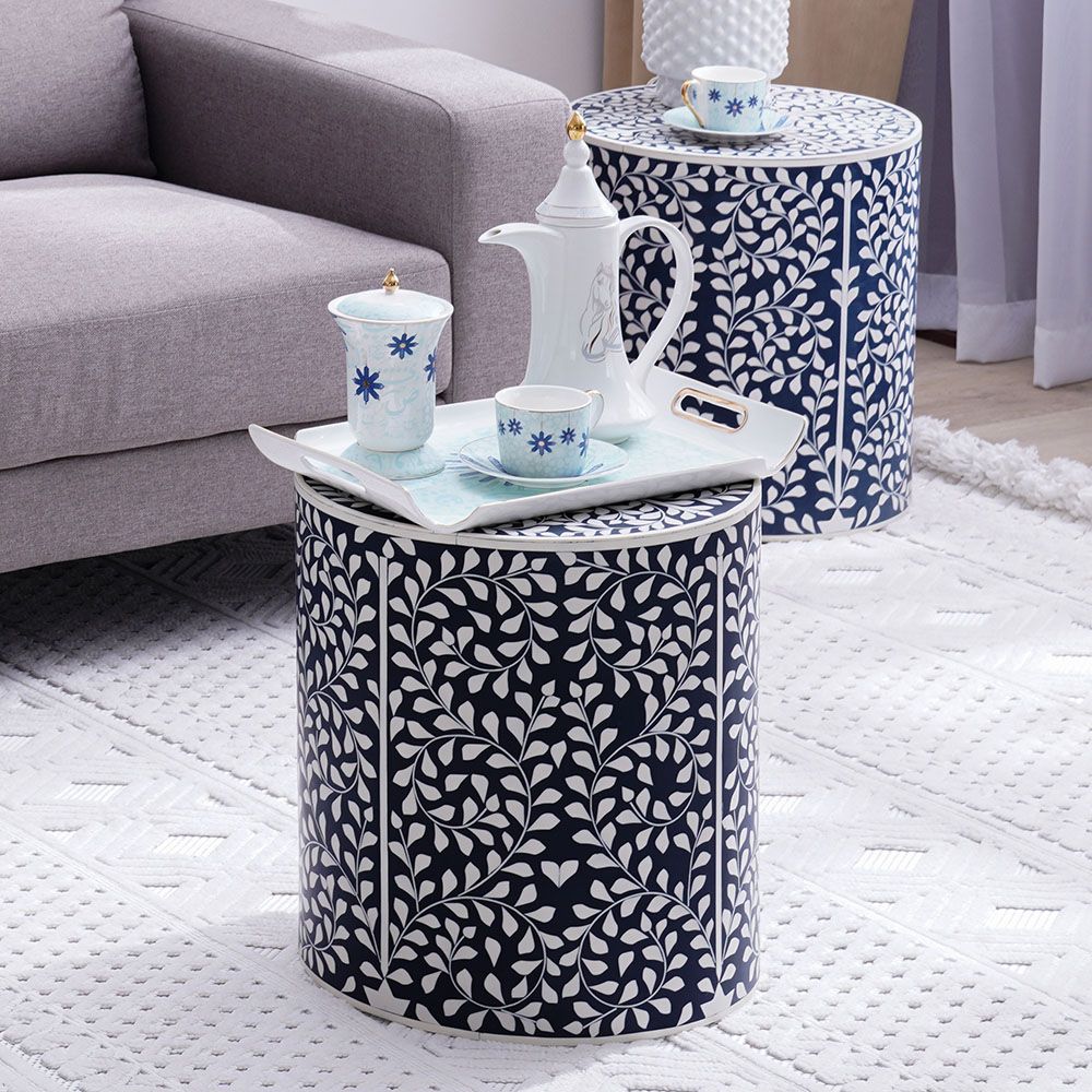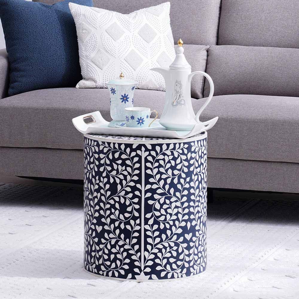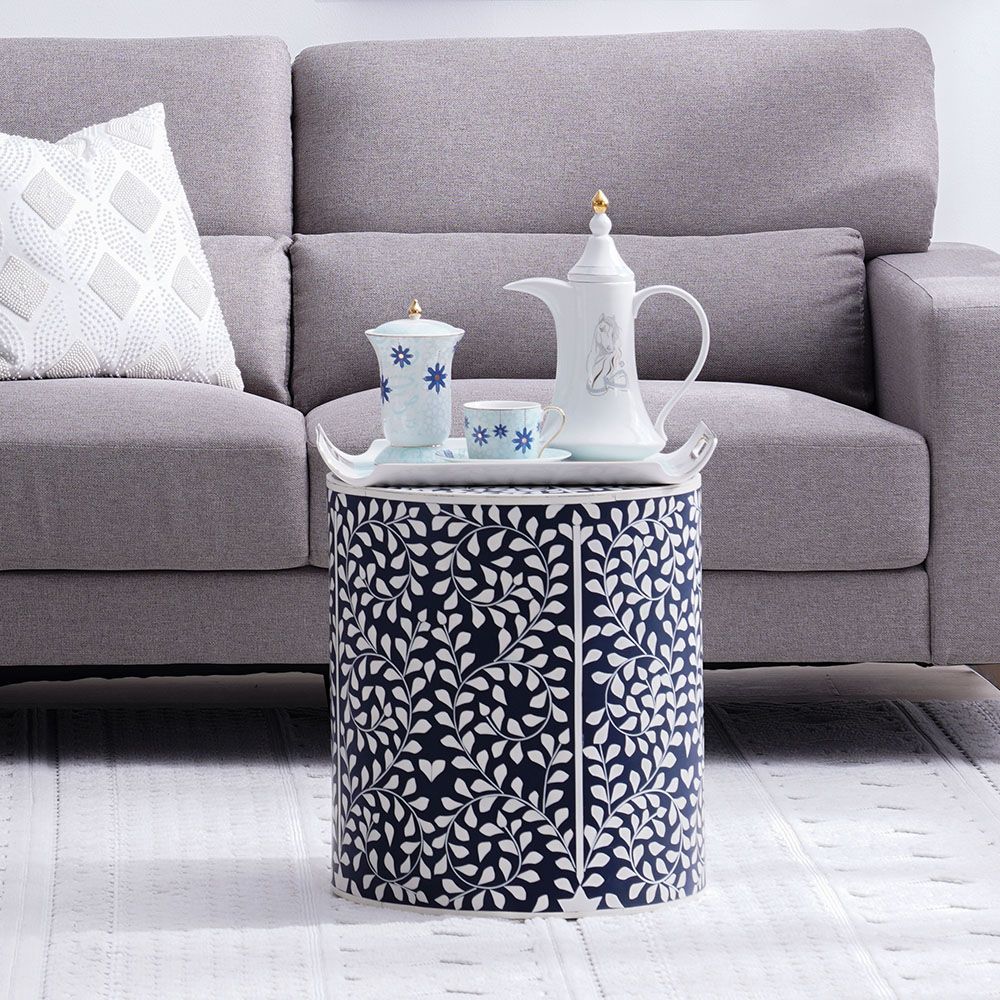 Optical Solid Wood Round End Table - Blue/Silver - With 2-Year Warranty