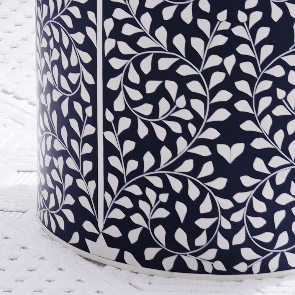 The intricate design on the body in blue and silver colors adds a bohemian charm that makes the chest the focal point in any given space.