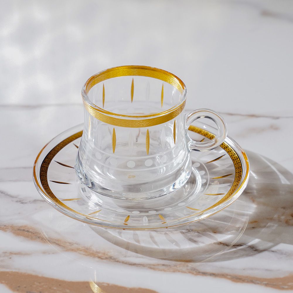 Unique and eye-catching design: The gold foil detailing makes these glass cawa, tea cup, and saucer stand out and adds a unique element to your collection of drinkware.