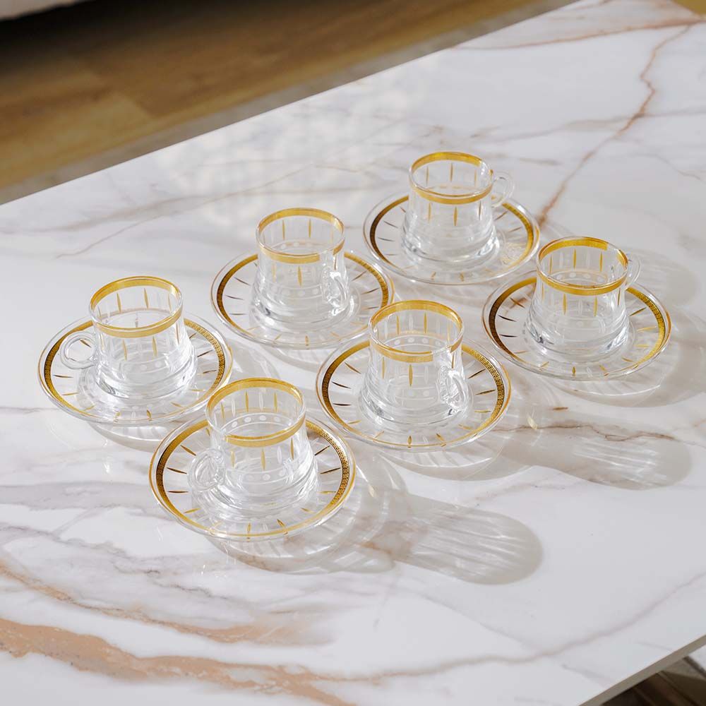 Orchid 12-Piece Glass Cup & Saucer Set 150ML Gold