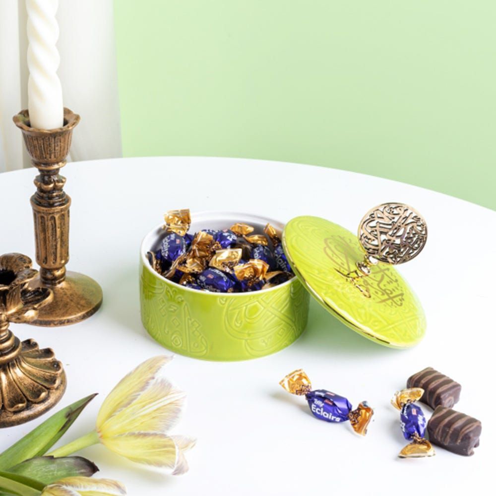 Otantik Zuwar Date Bowl With Cover 90Mm Green