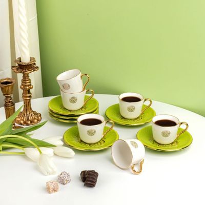 Otantik Zuwar Luxury Turkish Coffee Cup Set -Contains 6 Coffee Cup And 6 Saucers 80Cc Green