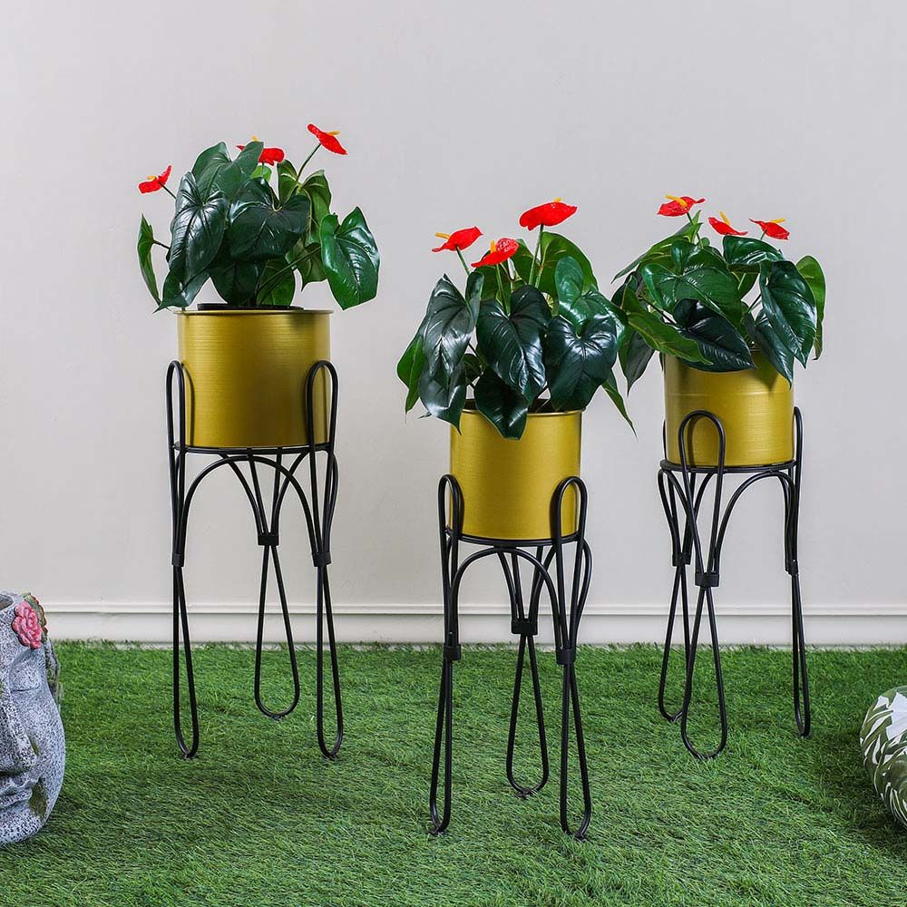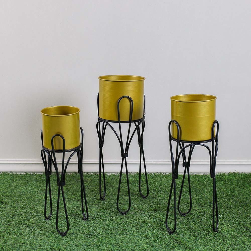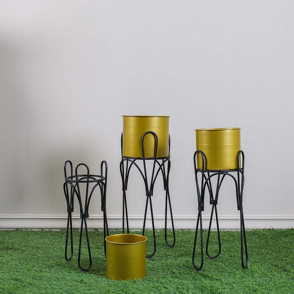 S/3 Plant Holder L:24X24X62-70 M:21X21X55-63,S:18X18X48-55Cm Jf180873 - Gold