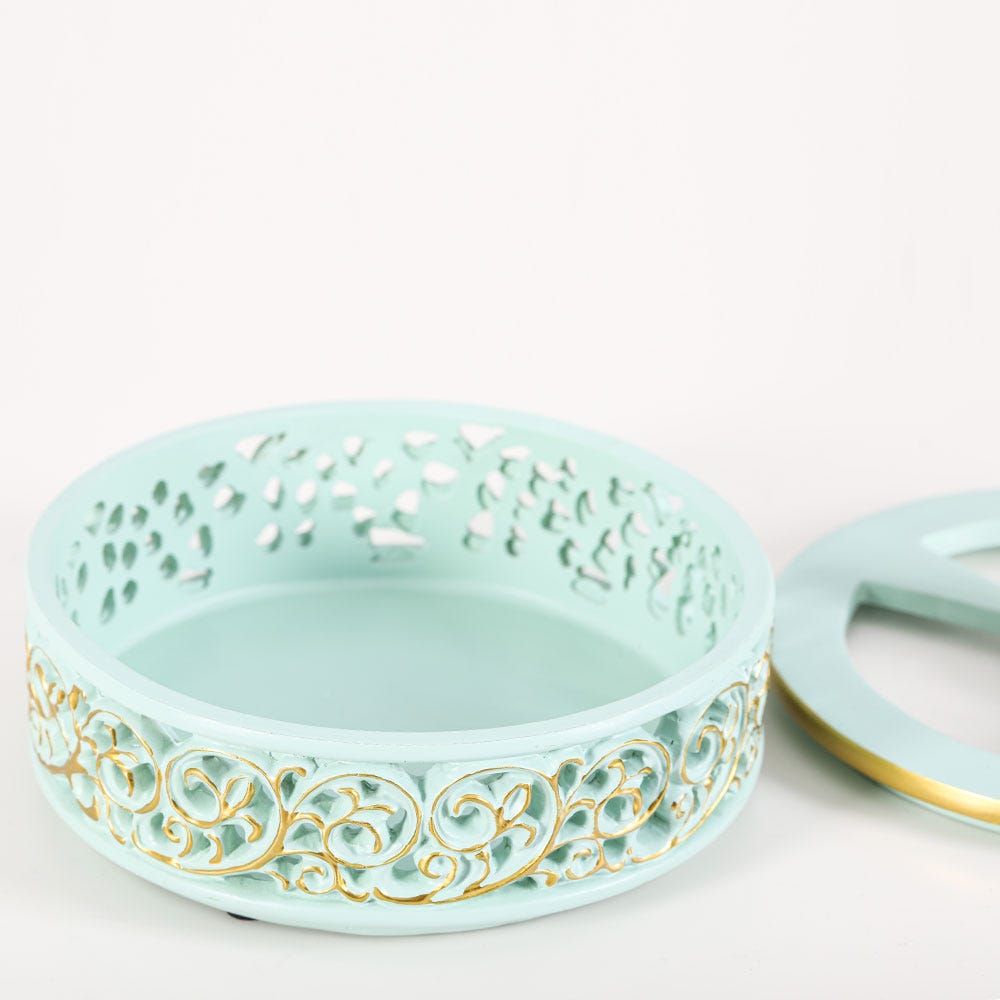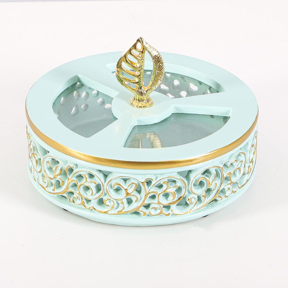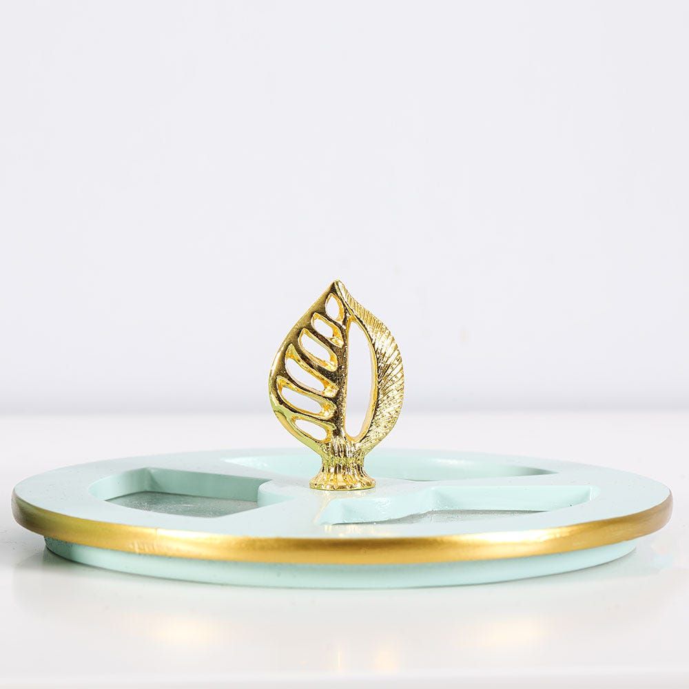 This beautiful trinket is just so lovely. The Serenity ranged trinket box with a green base and is designed with gold with a top lid and an attractive leaf knob. You can use it for office supplies, jewellery organizers, and much more.
