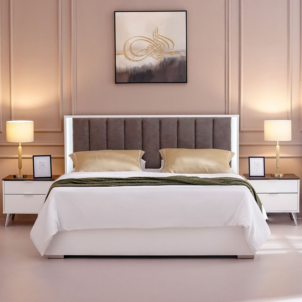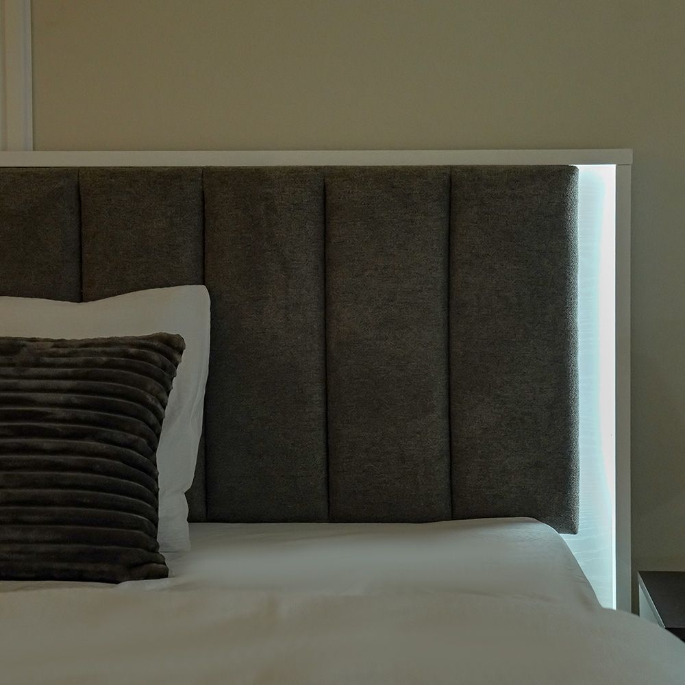 Sparkle 180X200 Bed With Upholstered Headboard & LED-HG White & Beige