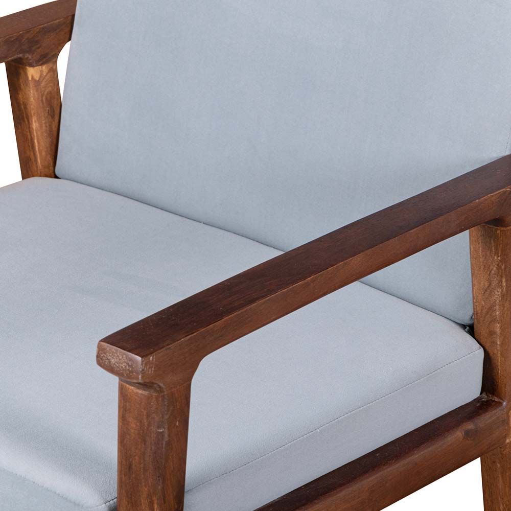 Complementing the wood, the chair is upholstered in a soft, grey fabric, adding a contemporary touch while ensuring comfort. It makes the chair versatile enough to blend seamlessly with a wide range of interior décor styles, from traditional to modern.