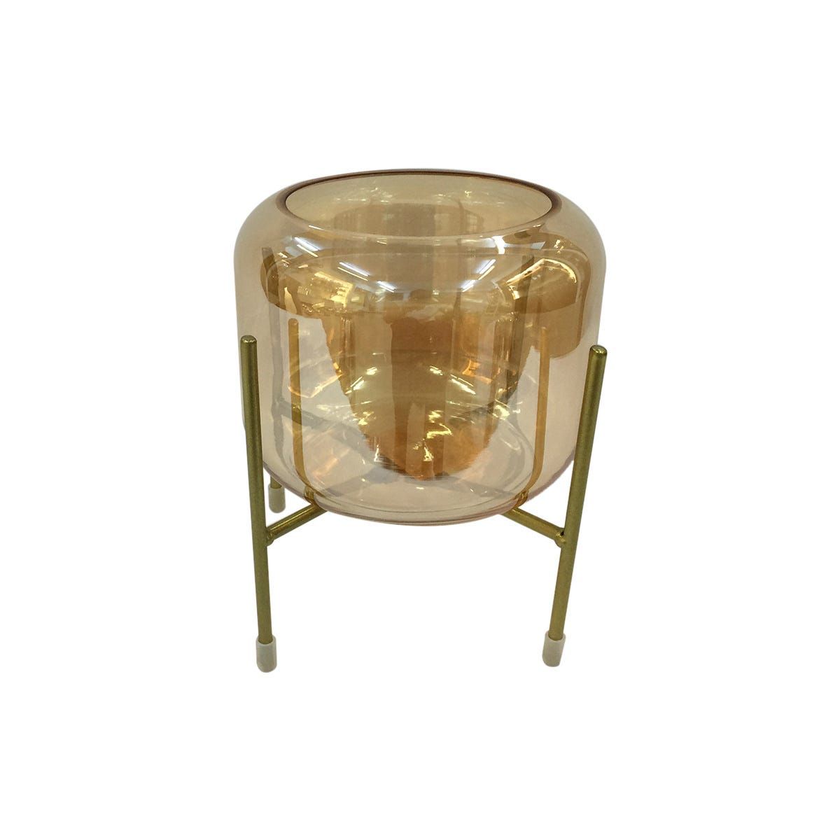 The product Turquoise Vase on Stand Luster Amber-ON images have props used for illustrative purposes. Product Color may vary slightly due to photographic lighting or your screen settings.