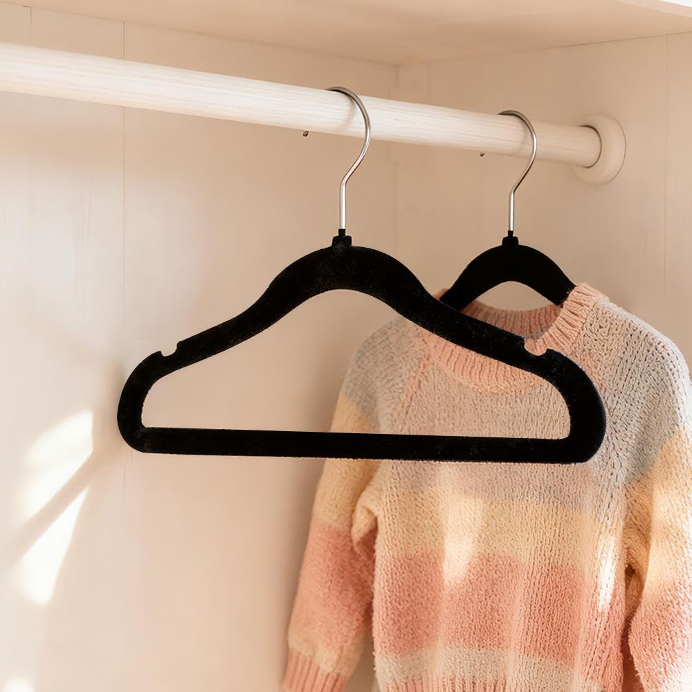 Keep your wardrobe organized and elegant with this set of 8 velvet non-slip hangers. Designed with a slim profile and soft velvet coating, they securely hold garments without slipping or creasing. Perfect for shirts, dresses, and jackets, these hangers help maximize closet space while maintaining a neat look.